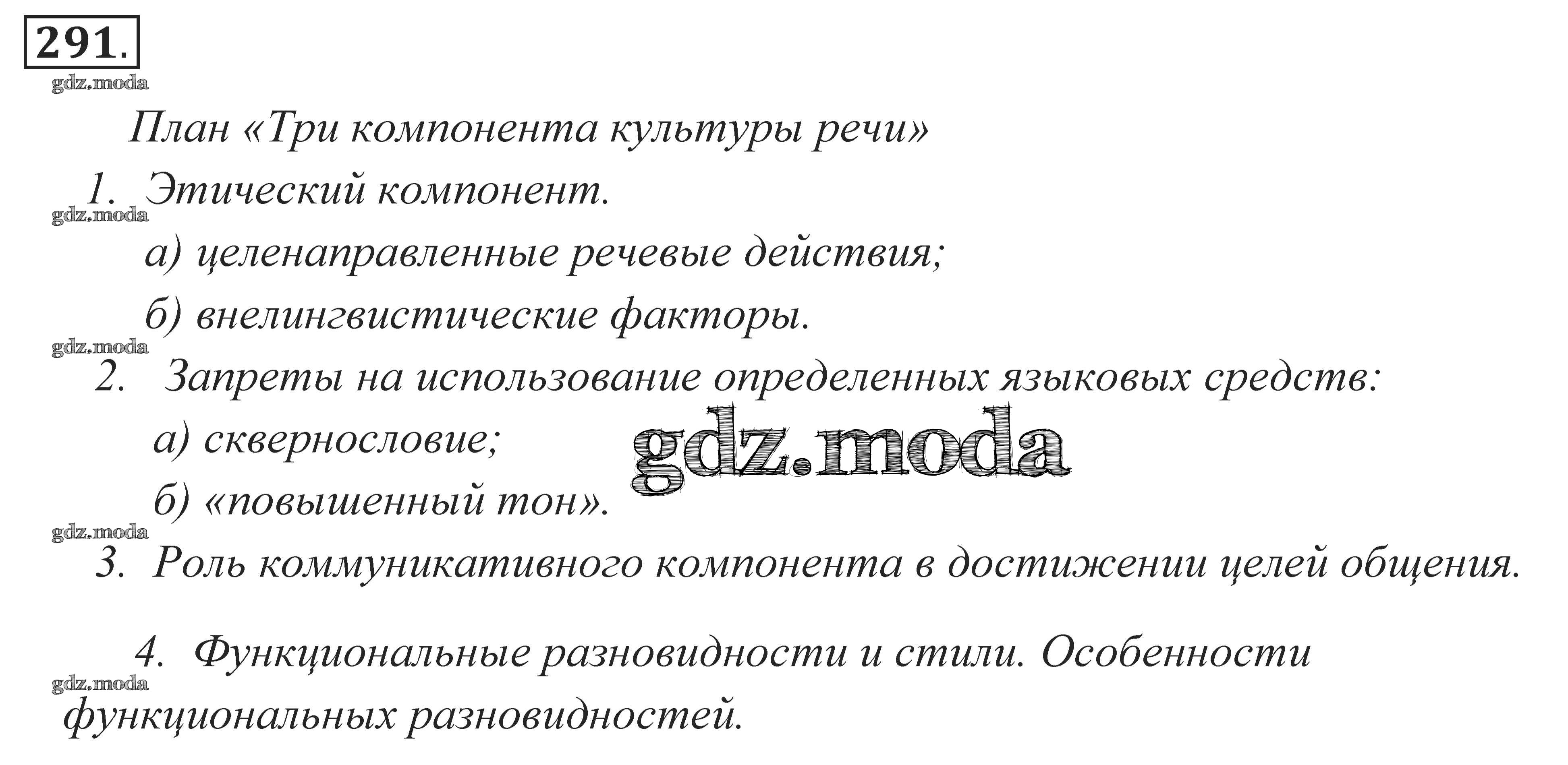 ОТВЕТ на задание № 291 Учебник по Русскому языку 10-11 класс Власенков Базовый уровень