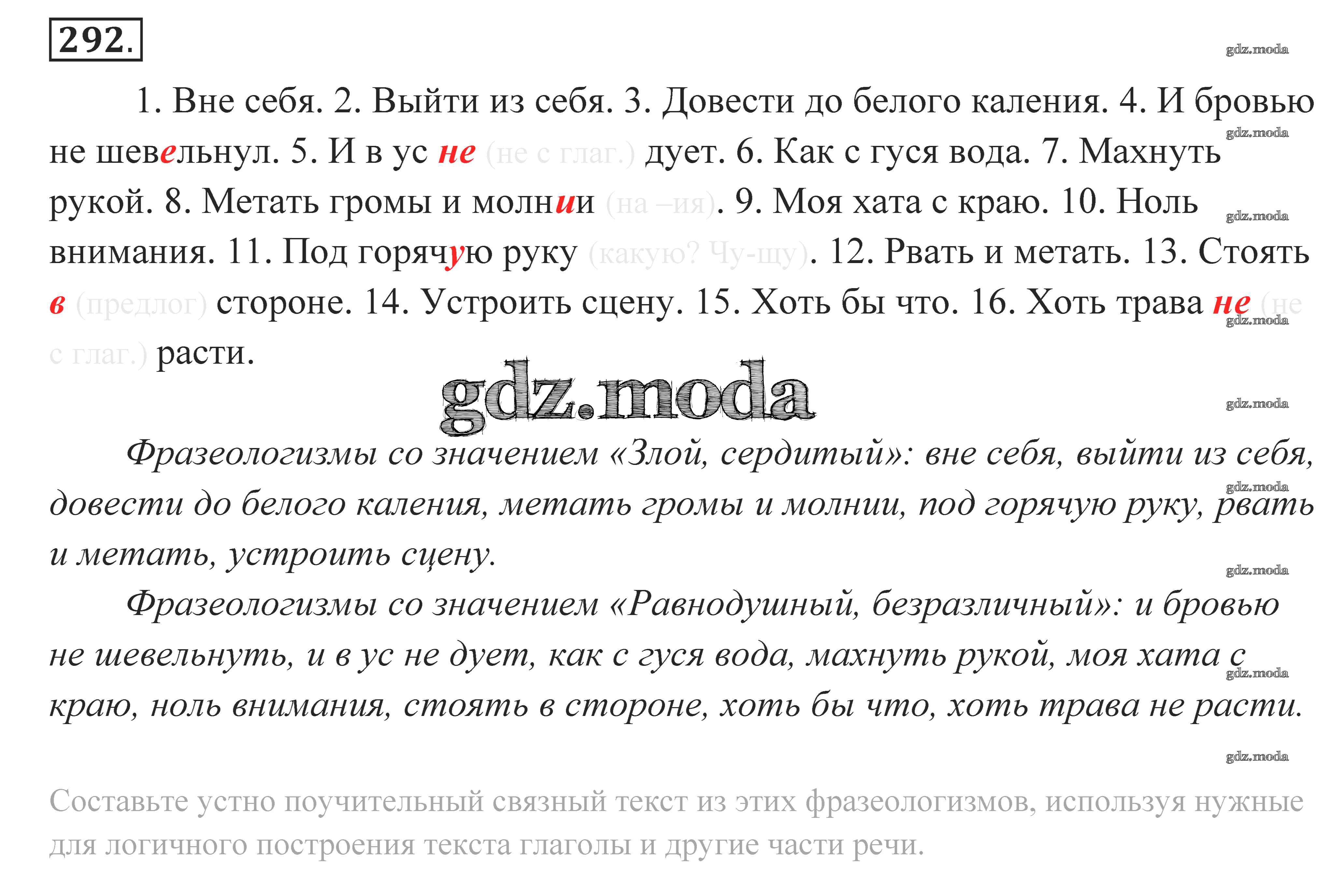ГДЗ решение к заданию № 292 Русский язык 10-11 класс Власенков А.И. Просвещение 2014 Базовый уровень бесплатно на гдз.мода!