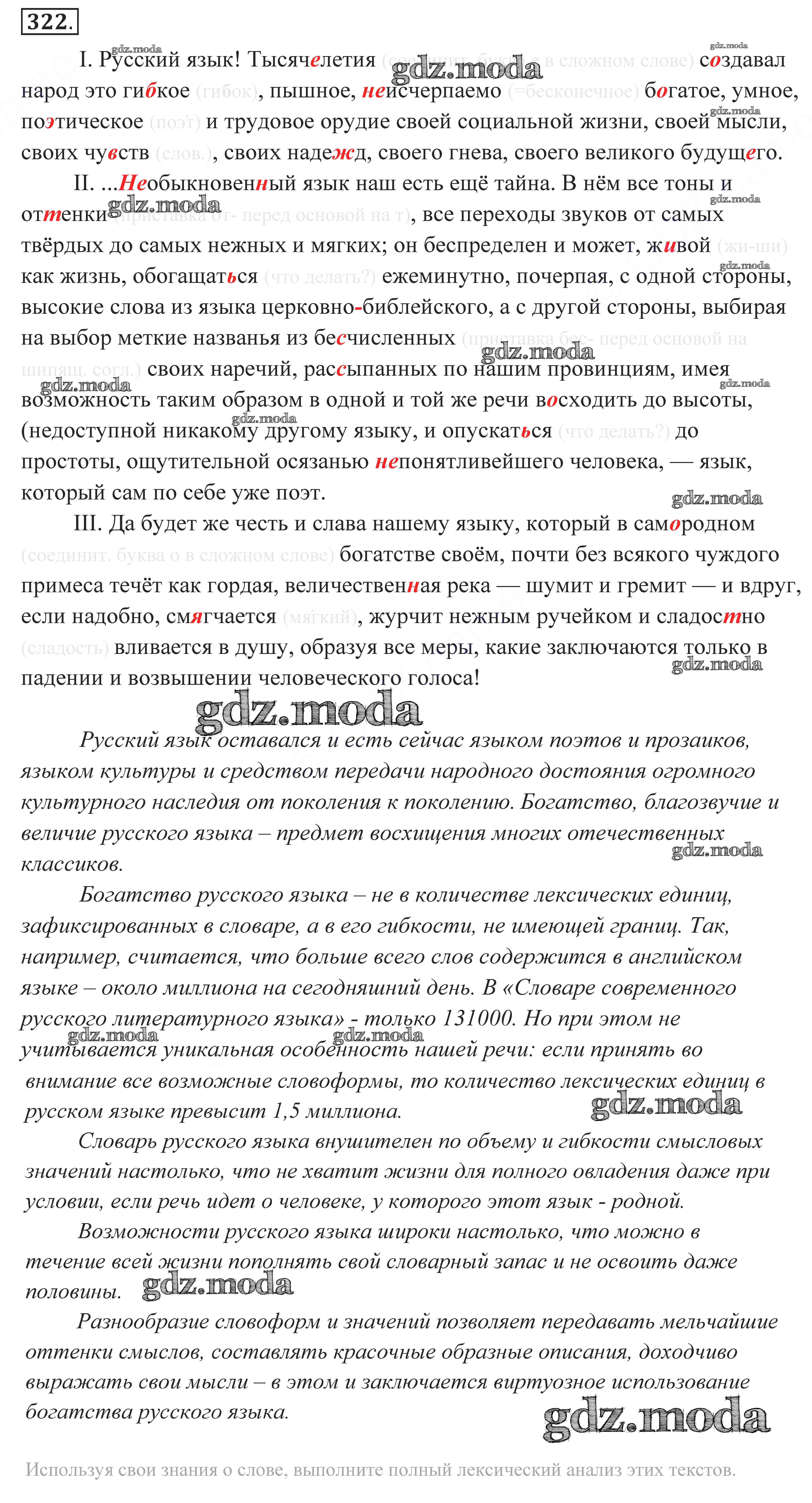 ОТВЕТ на задание № 322 Учебник по Русскому языку 10-11 класс Власенков Базовый уровень