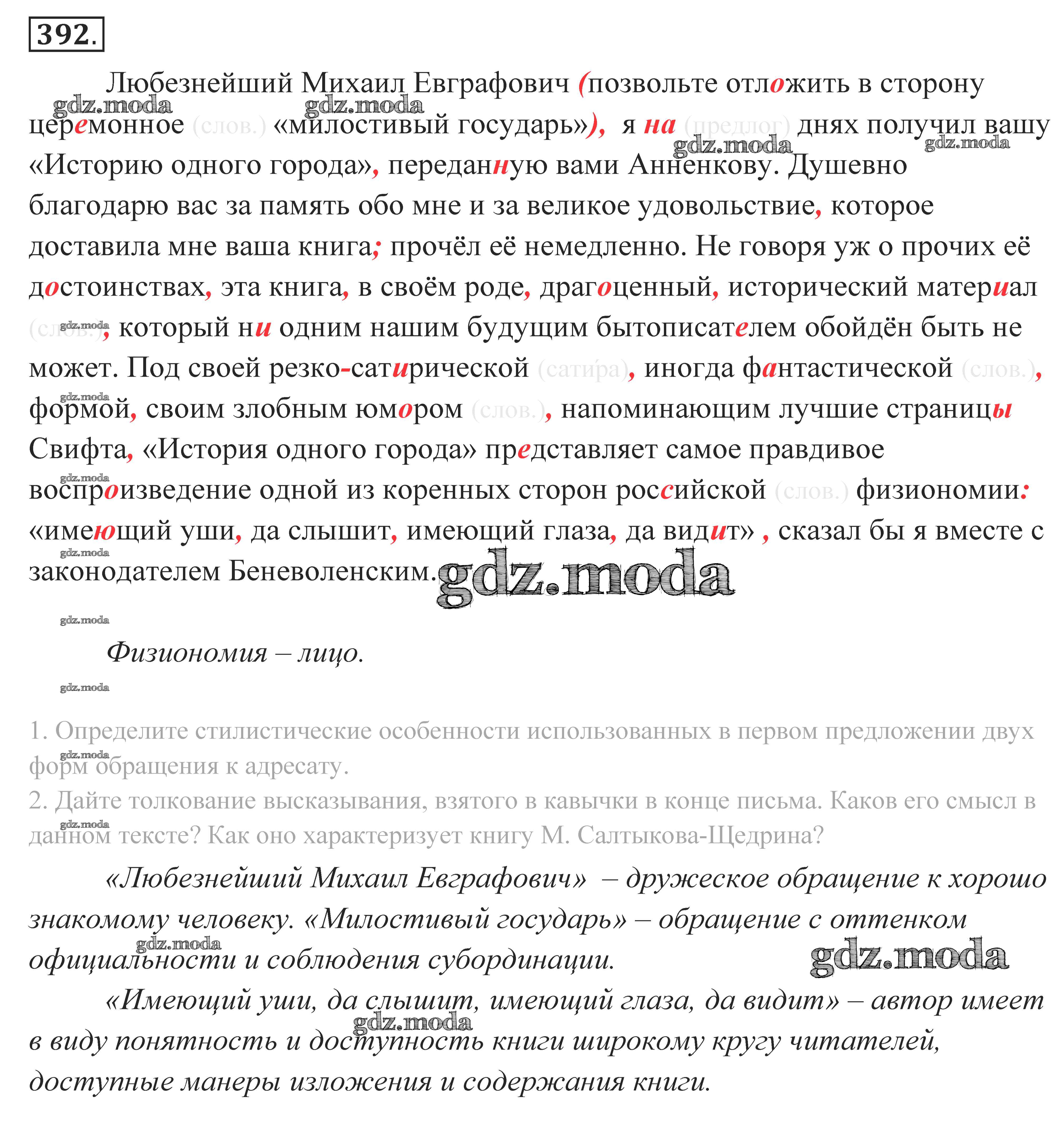 ГДЗ решение к заданию № 392 Русский язык 10-11 класс Власенков А.И. Просвещение 2014 Базовый уровень бесплатно на гдз.мода!