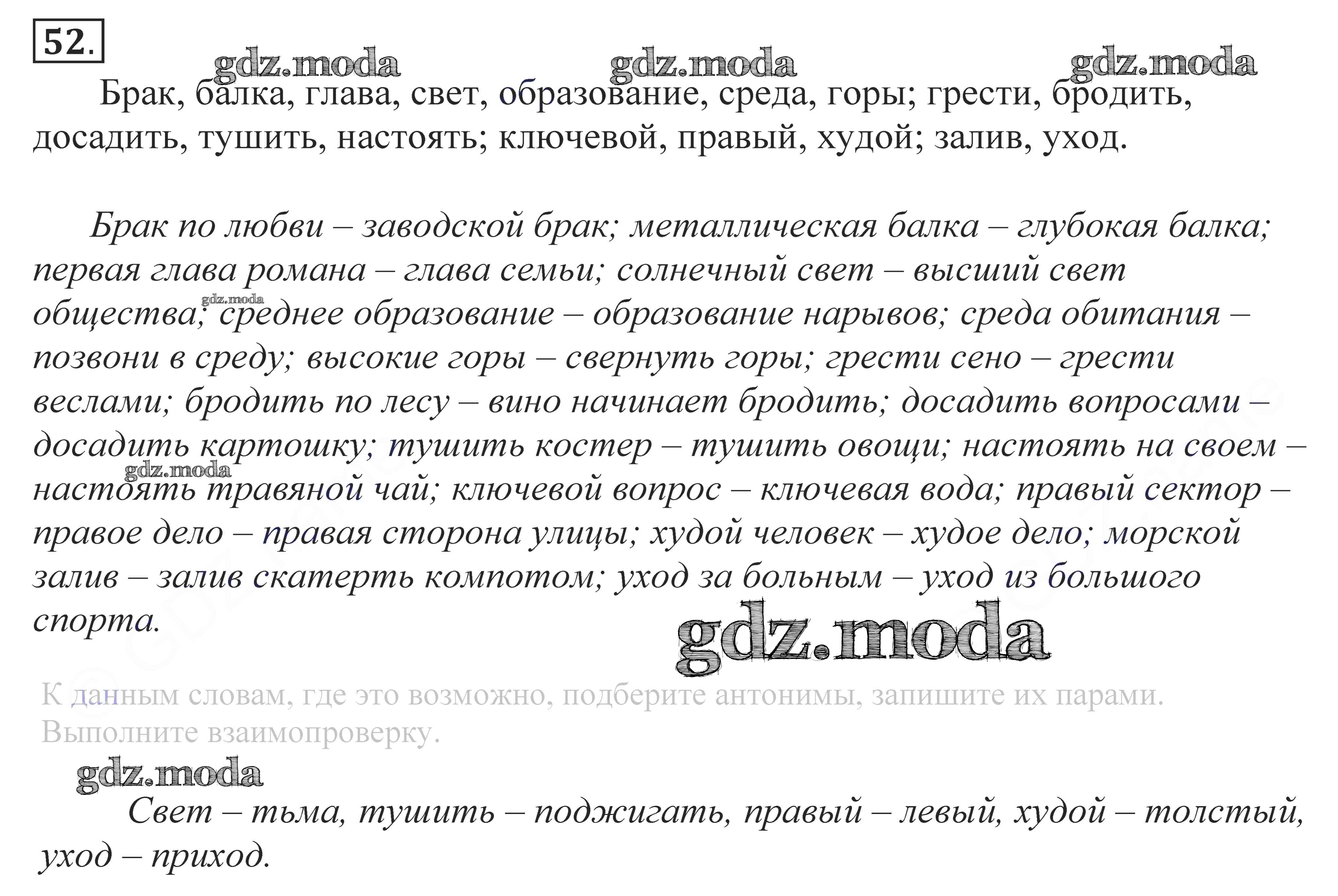 ГДЗ решение к заданию № 52 Русский язык 10-11 класс Власенков А.И. Просвещение 2014 Базовый уровень бесплатно на гдз.мода!