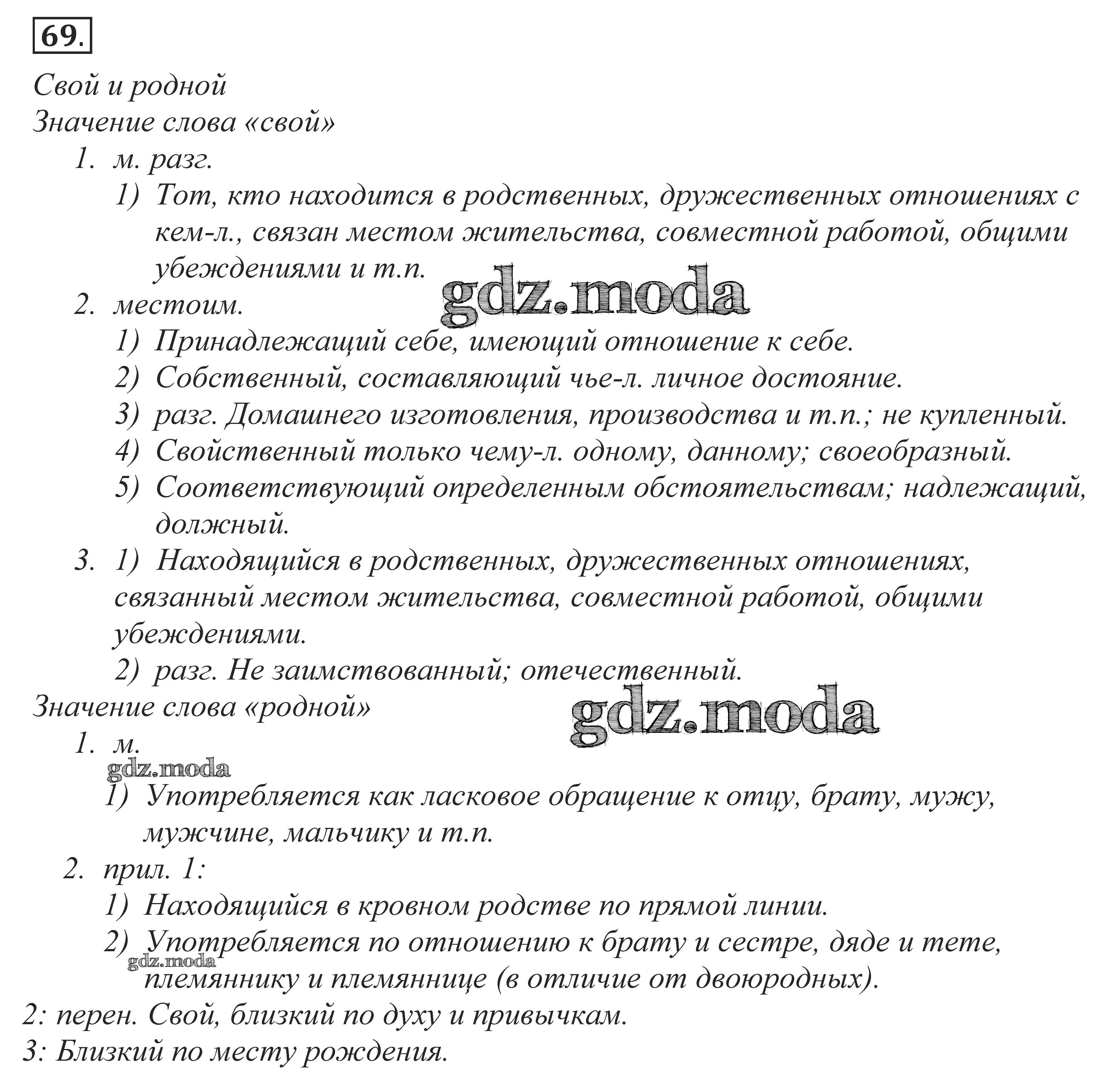 ГДЗ решение к заданию № 69 Русский язык 10-11 класс Власенков А.И. Просвещение 2014 Базовый уровень бесплатно на гдз.мода!
