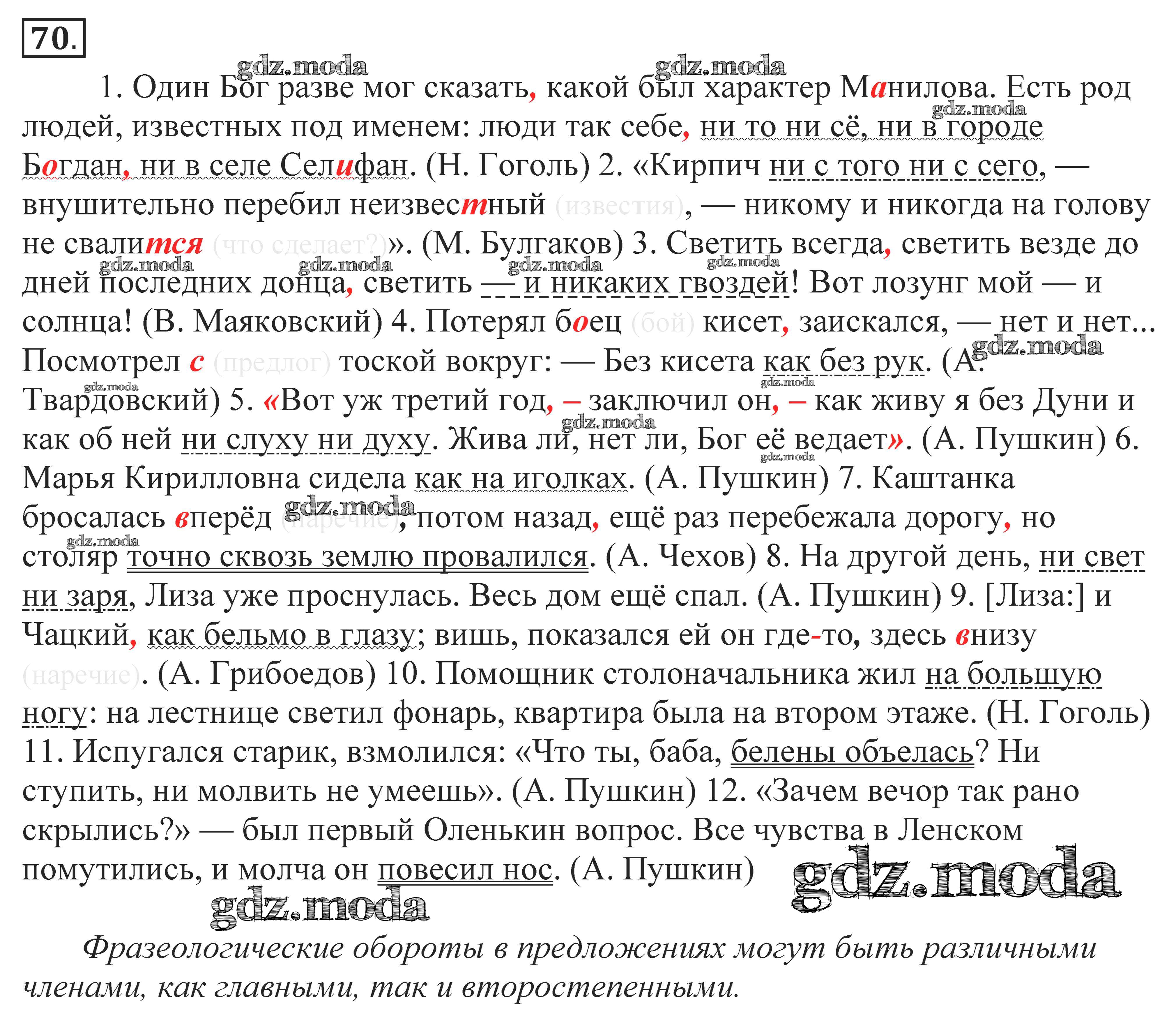 ГДЗ решение к заданию № 70 Русский язык 10-11 класс Власенков А.И. Просвещение 2014 Базовый уровень бесплатно на гдз.мода!