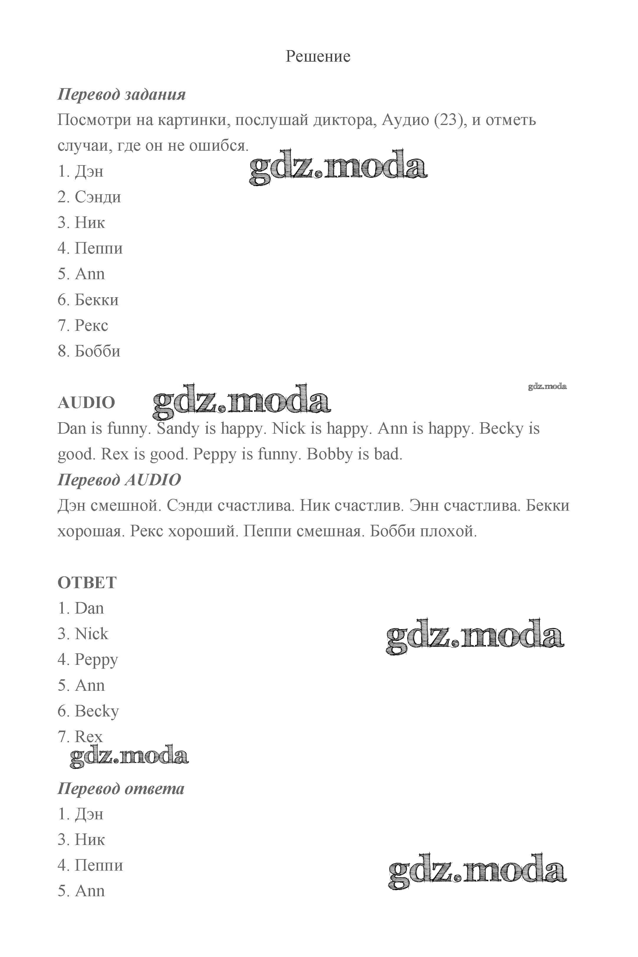 ГДЗ решение к заданию № 23 Английский язык 2 класс рабочая тетрадь Афанасьева Михеева Rainbow Дрофа 2016 ФГОС бесплатно на гдз.мода!