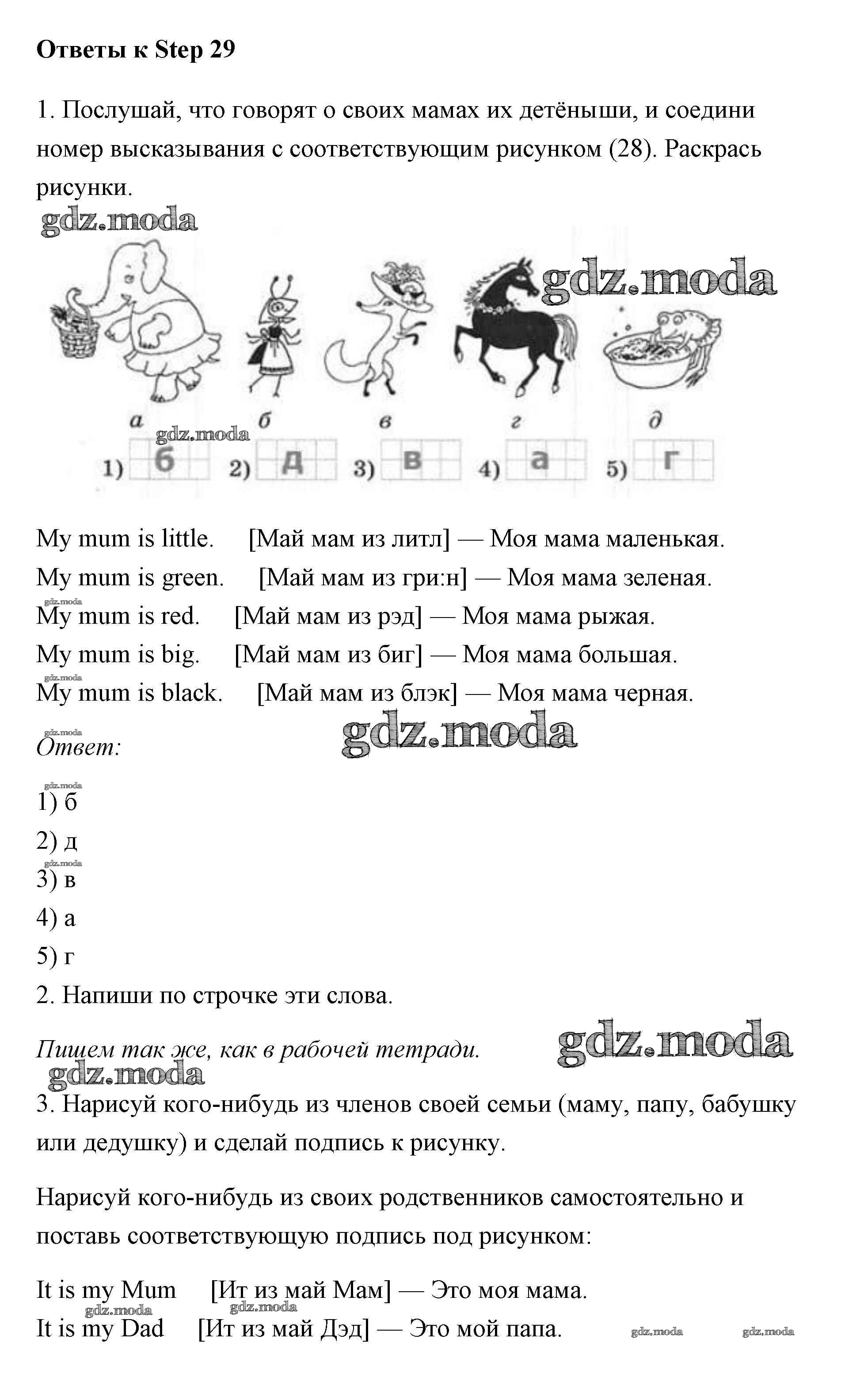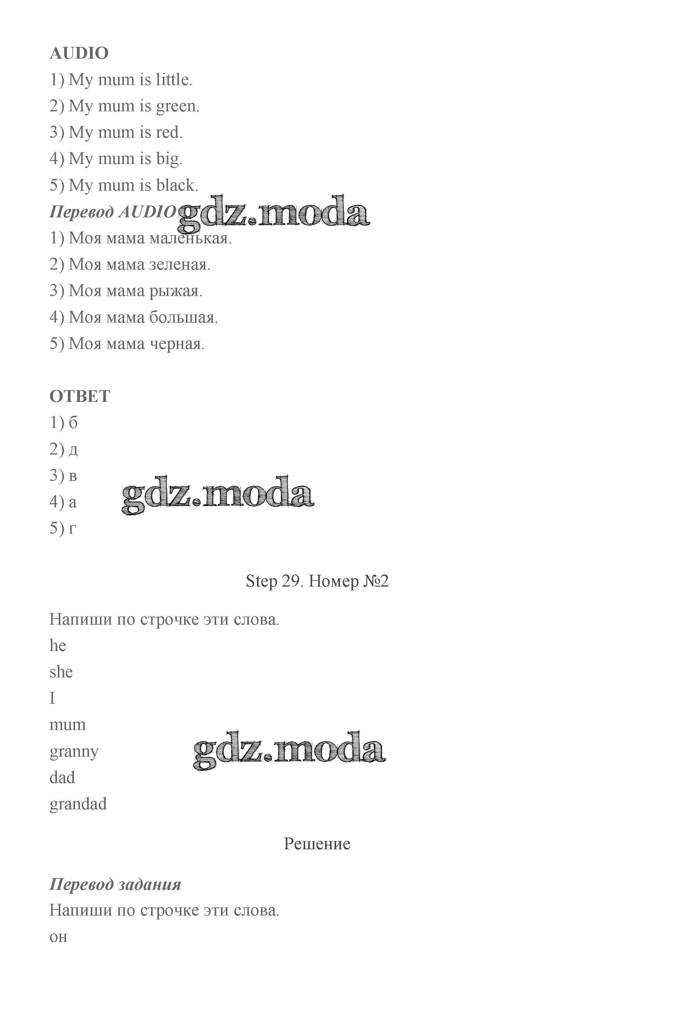 ГДЗ решение к заданию № 29 Английский язык 2 класс рабочая тетрадь Афанасьева Михеева Rainbow Дрофа 2016 ФГОС бесплатно на гдз.мода!