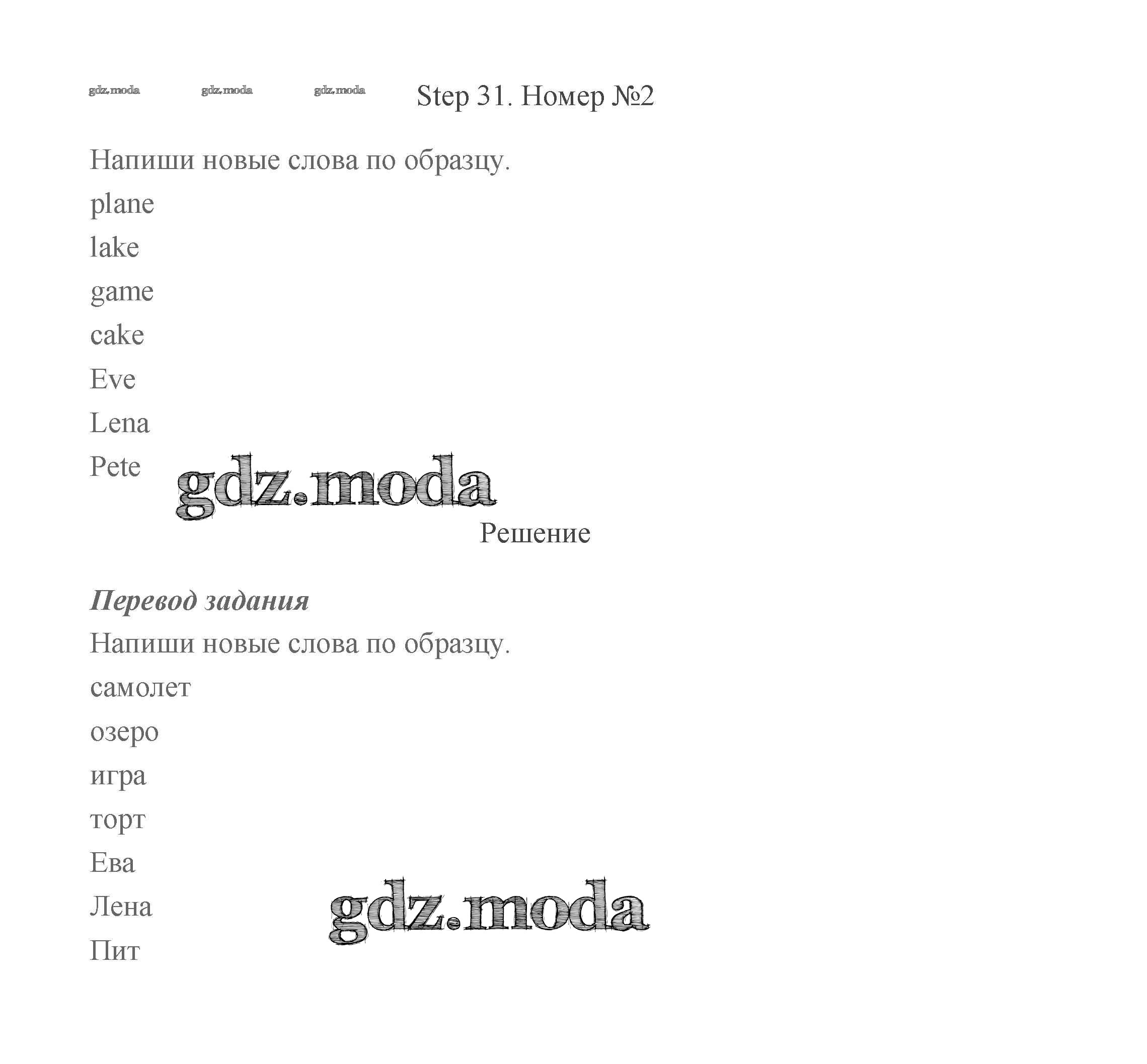 ГДЗ решение к заданию № 31 Английский язык 2 класс рабочая тетрадь Афанасьева Михеева Rainbow Дрофа 2016 ФГОС бесплатно на гдз.мода!
