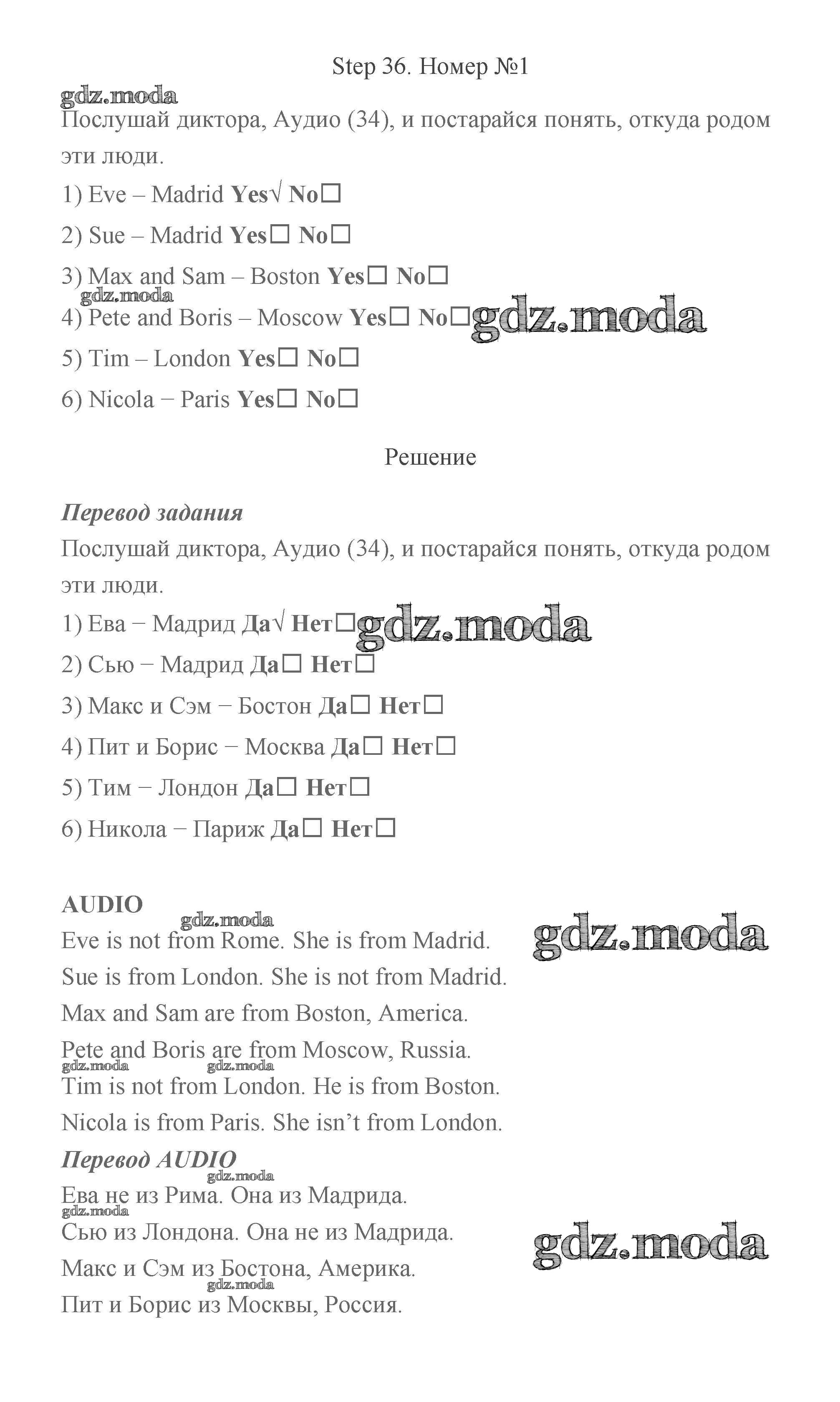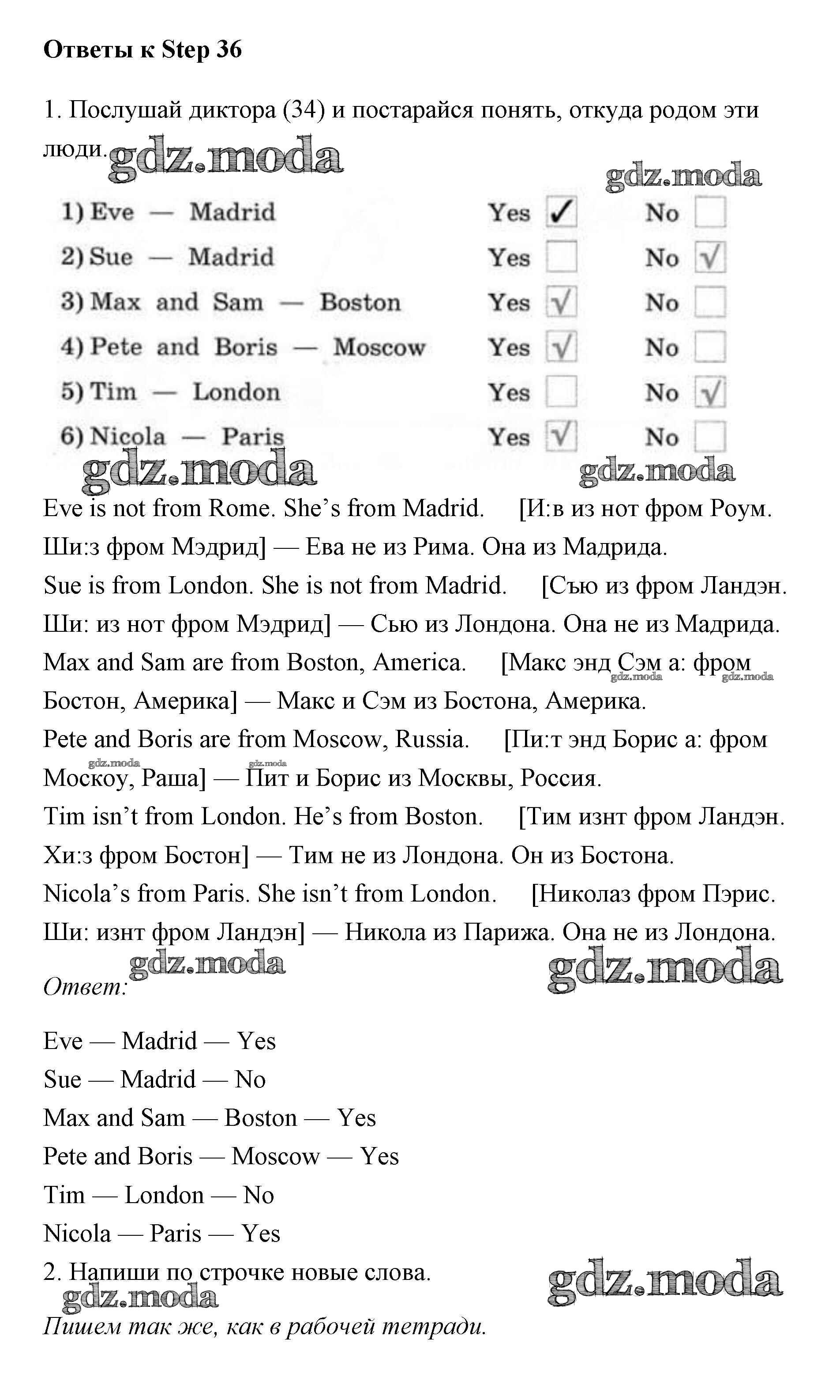 ГДЗ решение к заданию № 36 Английский язык 2 класс рабочая тетрадь Афанасьева Михеева Rainbow Дрофа 2016 ФГОС бесплатно на гдз.мода!
