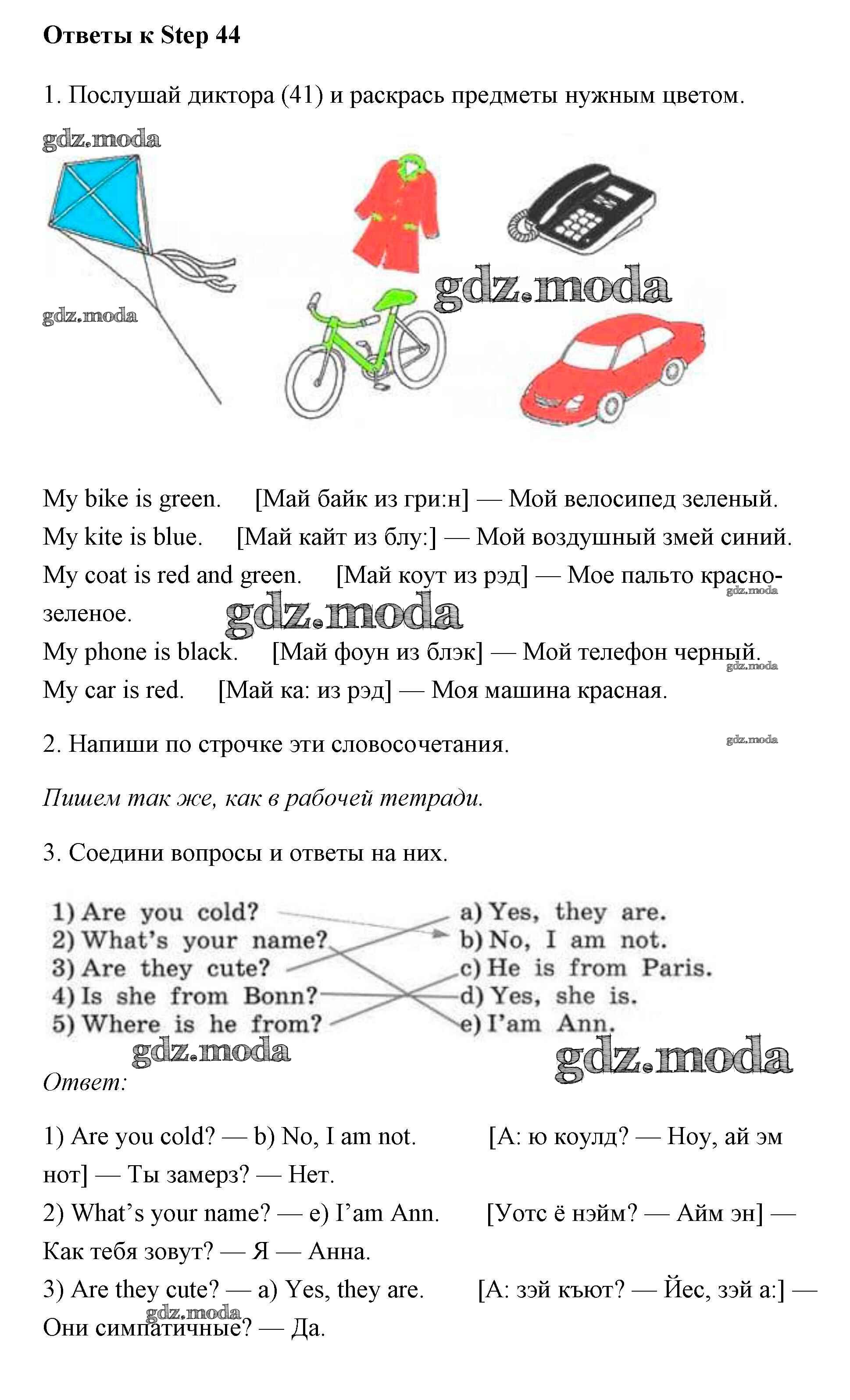 ГДЗ решение к заданию № 44 Английский язык 2 класс рабочая тетрадь Афанасьева Михеева Rainbow Дрофа 2016 ФГОС бесплатно на гдз.мода!