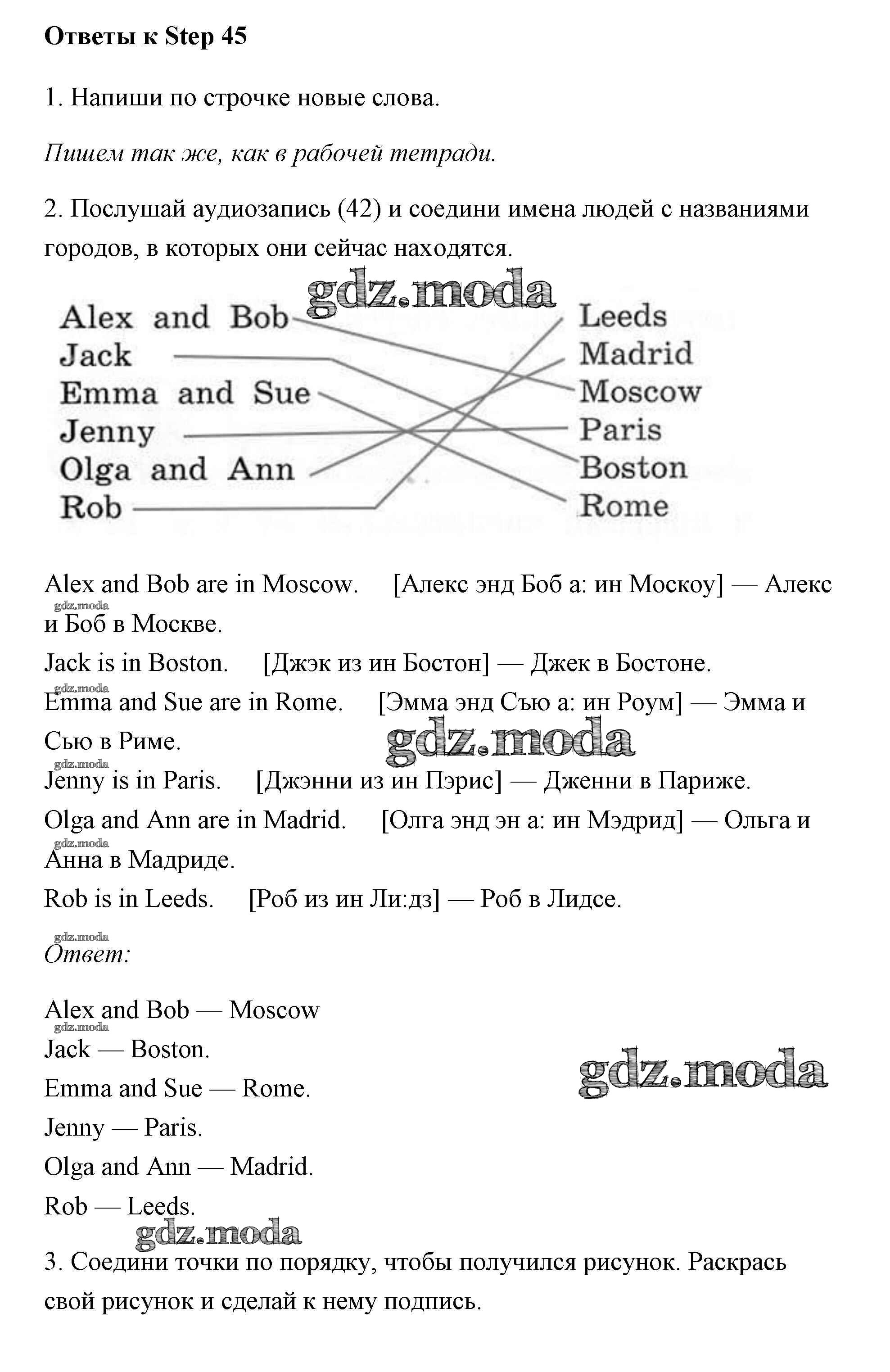 ГДЗ решение к заданию № 45 Английский язык 2 класс рабочая тетрадь Афанасьева Михеева Rainbow Дрофа 2016 ФГОС бесплатно на гдз.мода!