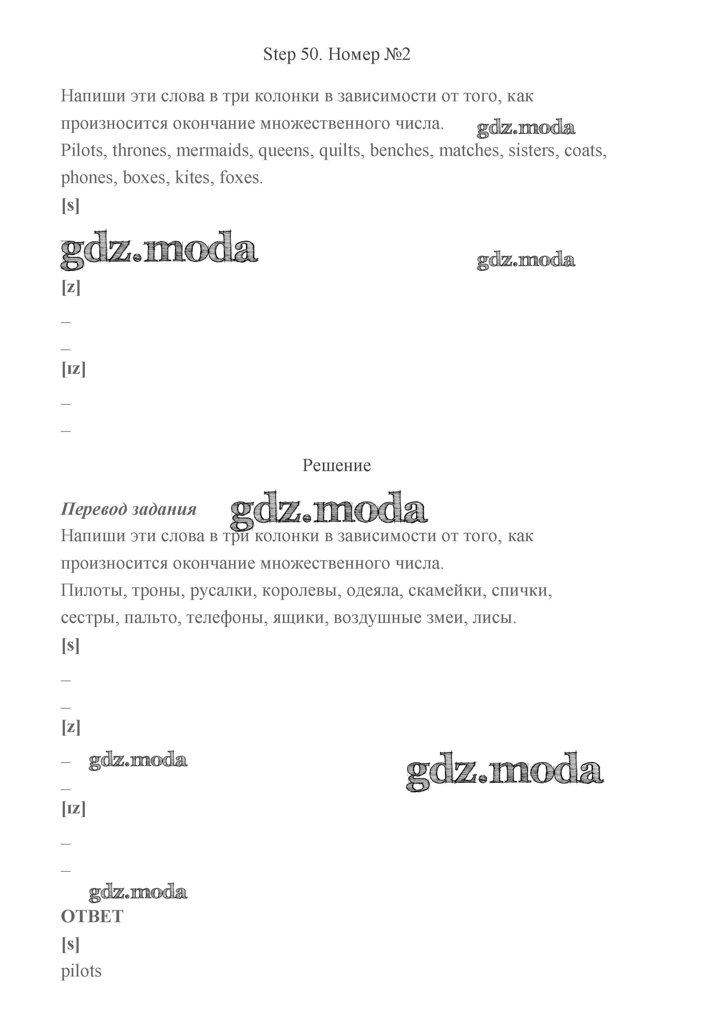 ГДЗ решение к заданию № 50 Английский язык 2 класс рабочая тетрадь Афанасьева Михеева Rainbow Дрофа 2016 ФГОС бесплатно на гдз.мода!