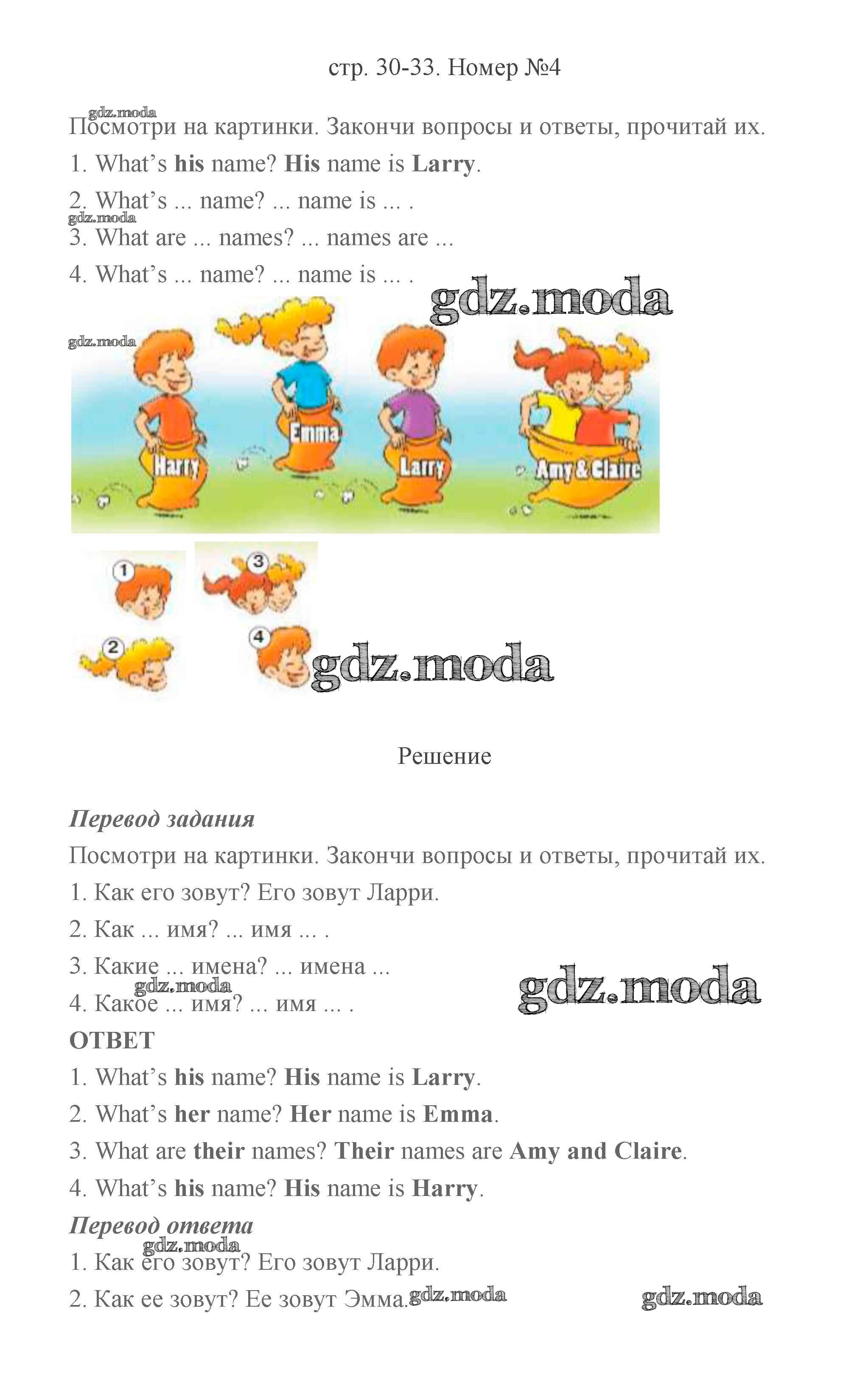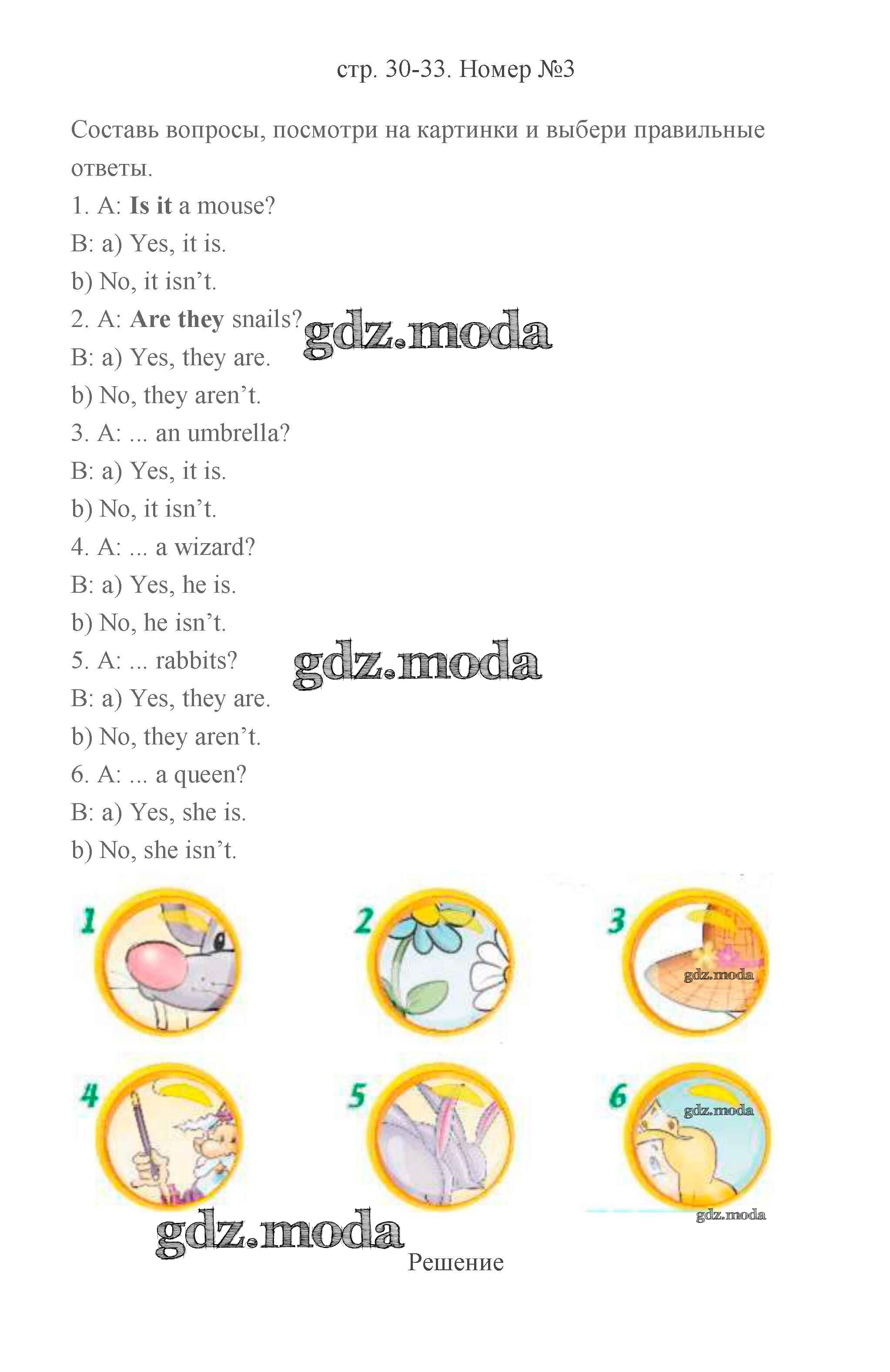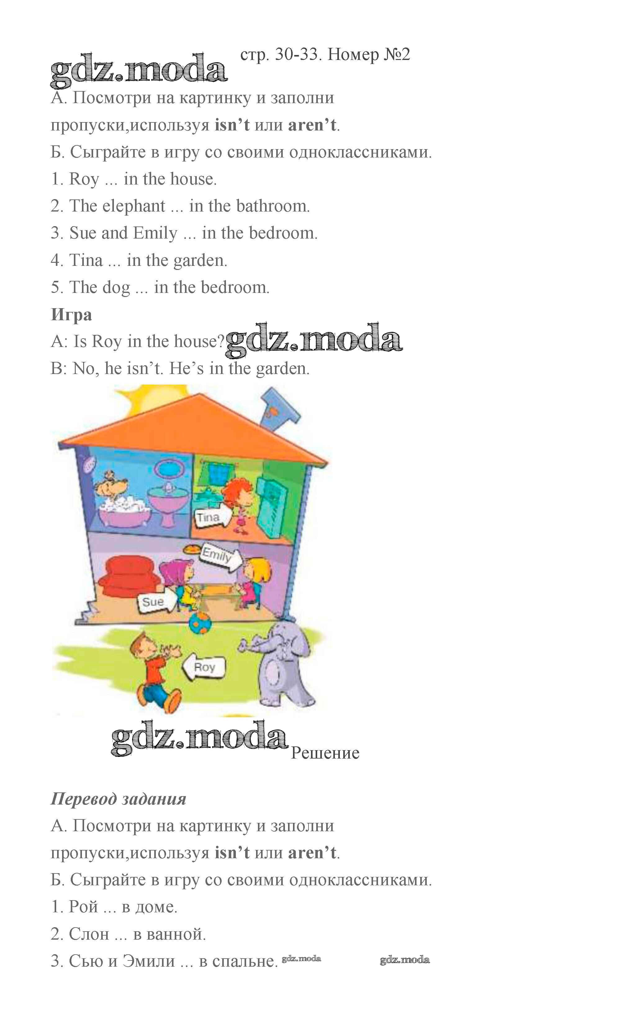 ГДЗ решение к заданию № 30-33 Английский язык 2 класс Баранова (в 2-х частях) Просвещение 2016 Часть 1, Часть 2 Углубленный уровень ФГОС бесплатно на гдз.мода!