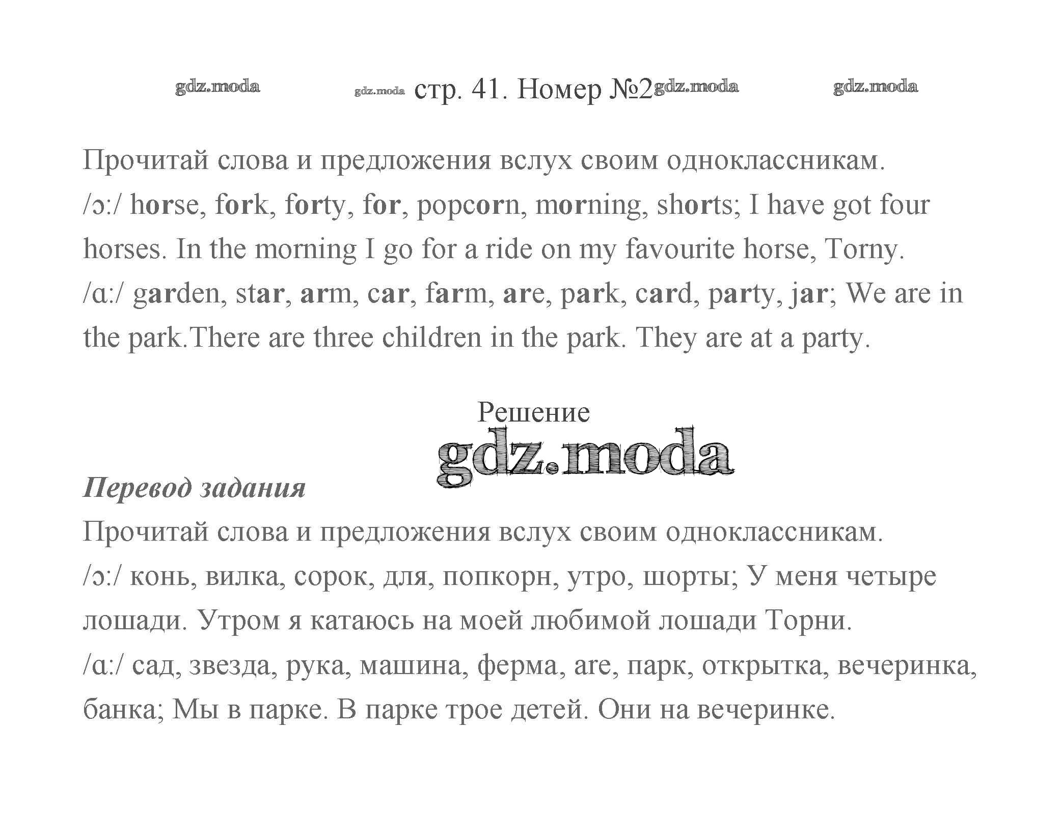 ГДЗ решение к заданию № 41 Английский язык 2 класс Баранова (в 2-х частях) Просвещение 2016 Часть 1, Часть 2 Углубленный уровень ФГОС бесплатно на гдз.мода!