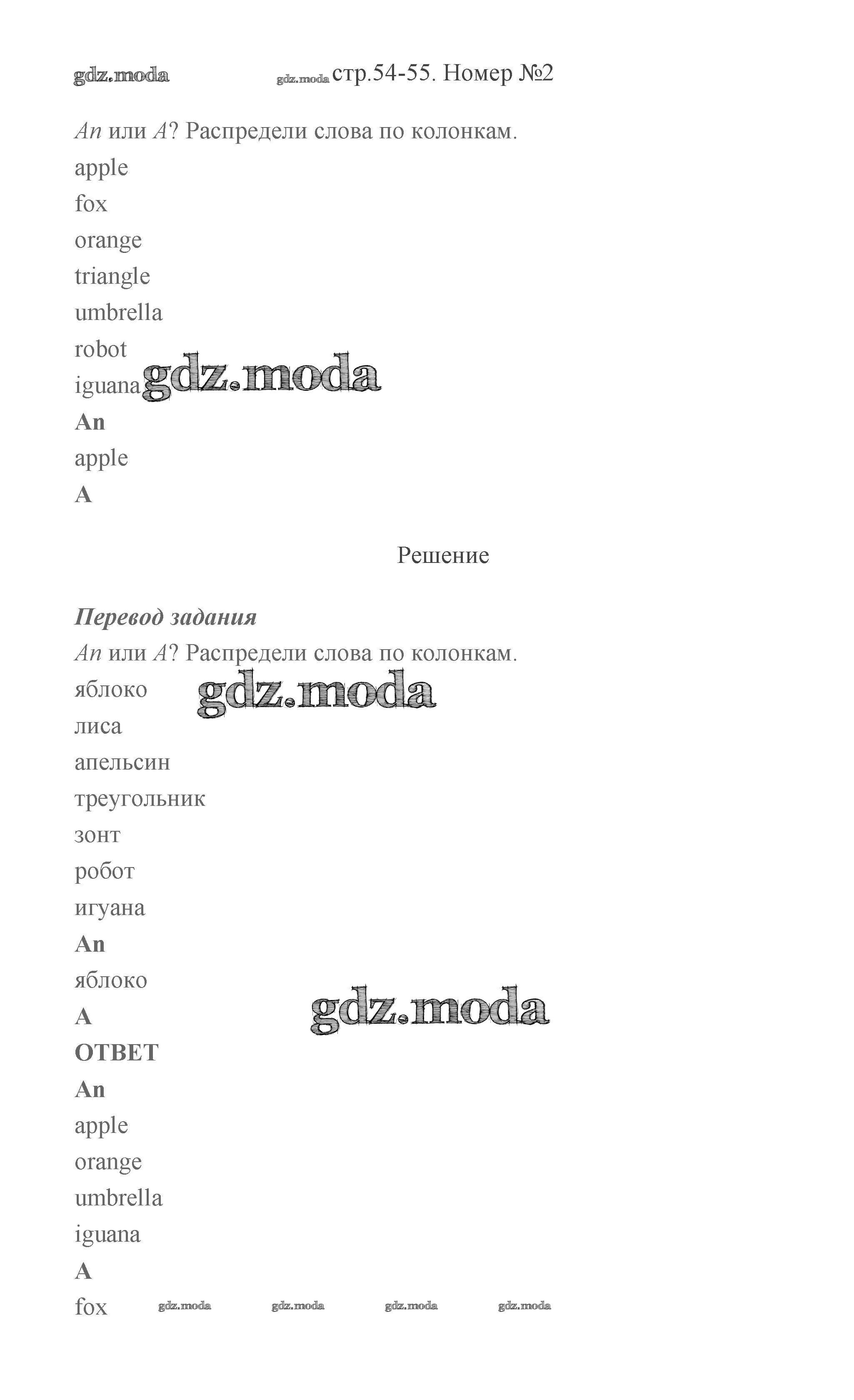 ГДЗ решение к заданию № 54-55 Английский язык 2 класс Баранова (в 2-х частях) Просвещение 2016 Часть 1, Часть 2 Углубленный уровень ФГОС бесплатно на гдз.мода!