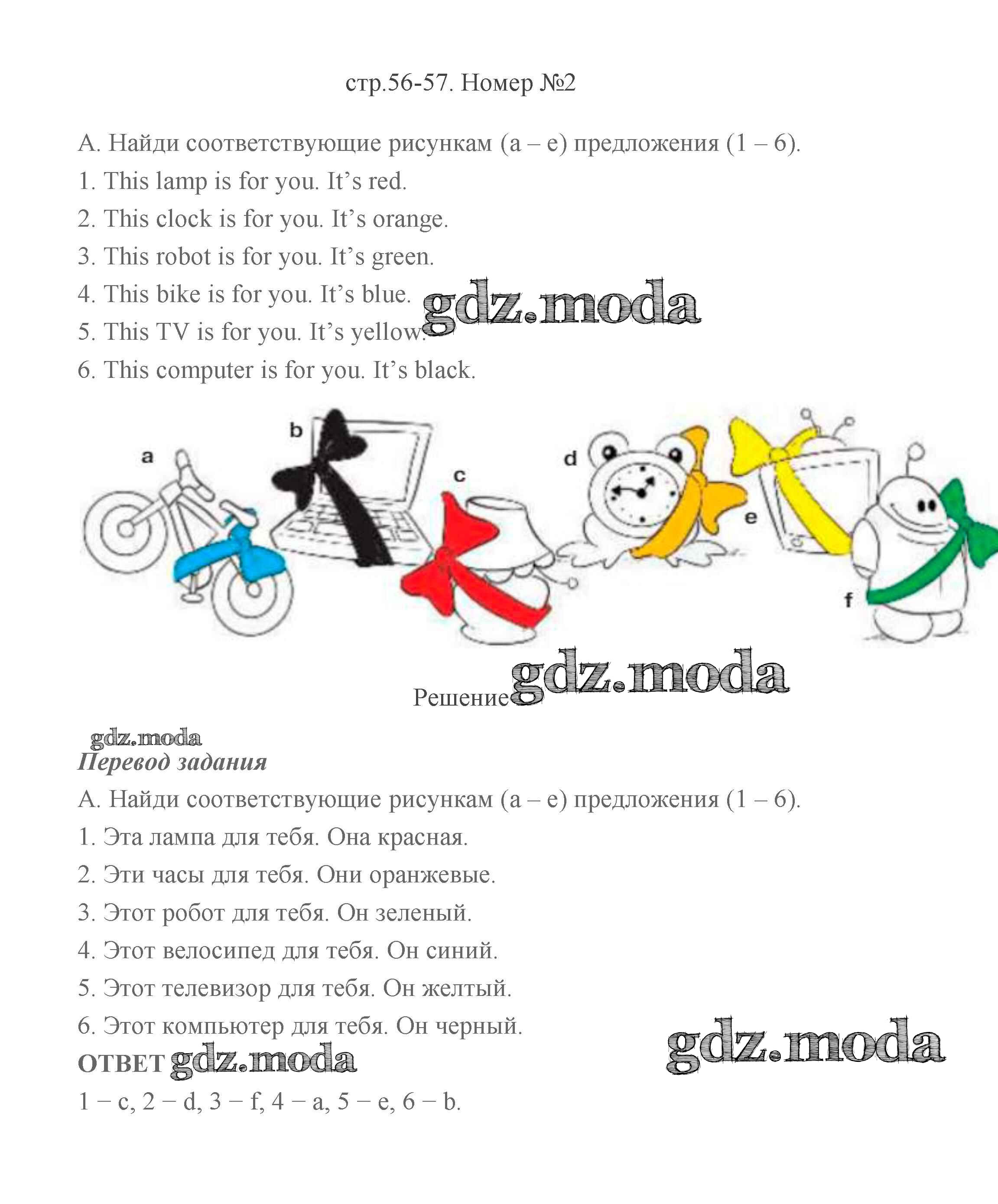 ГДЗ решение к заданию № 56-57 Английский язык 2 класс Баранова (в 2-х частях) Просвещение 2016 Часть 1, Часть 2 Углубленный уровень ФГОС бесплатно на гдз.мода!