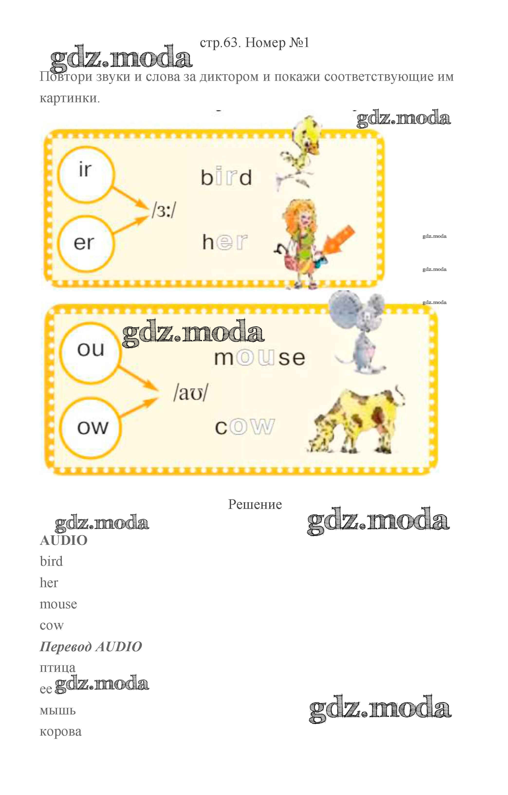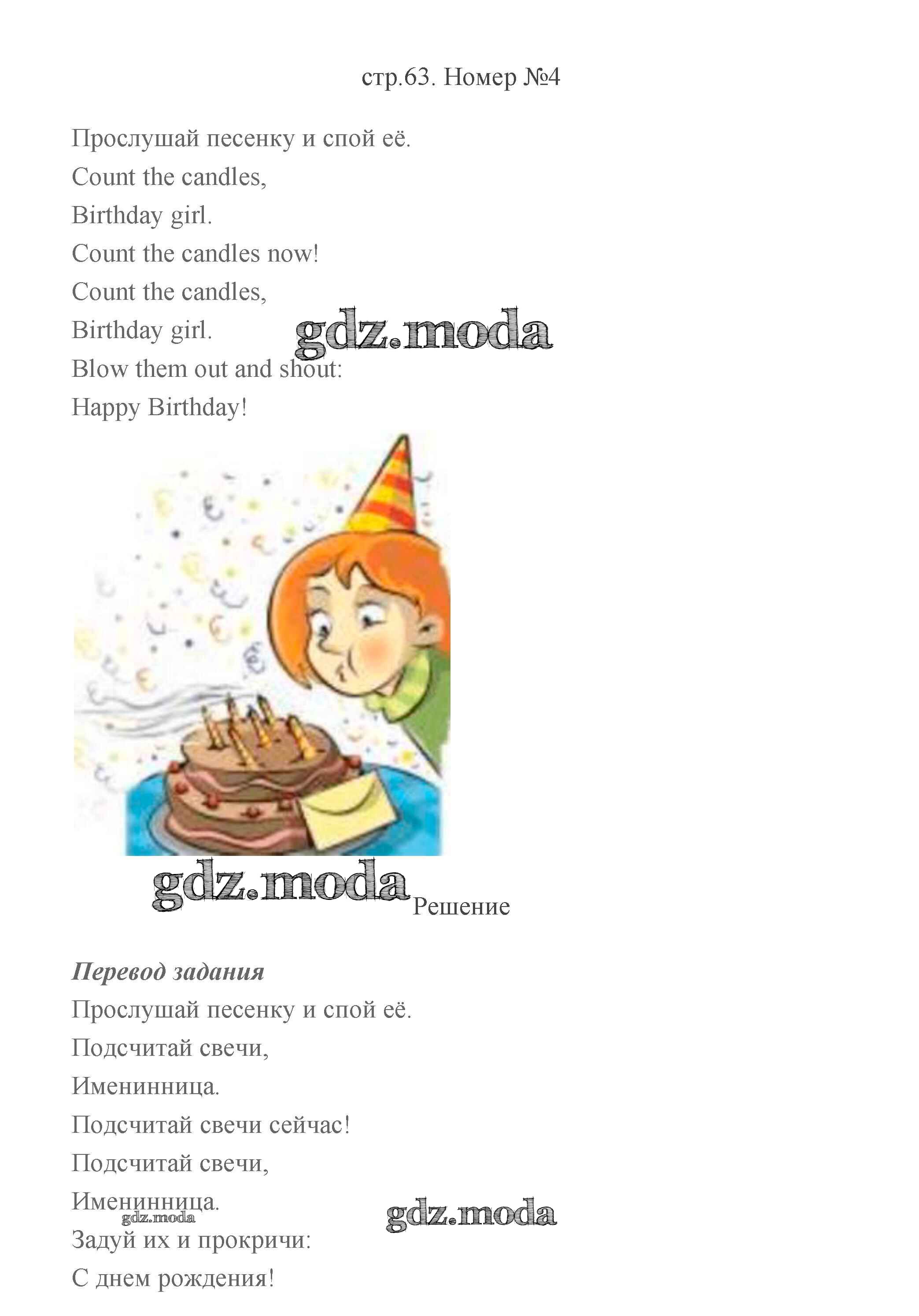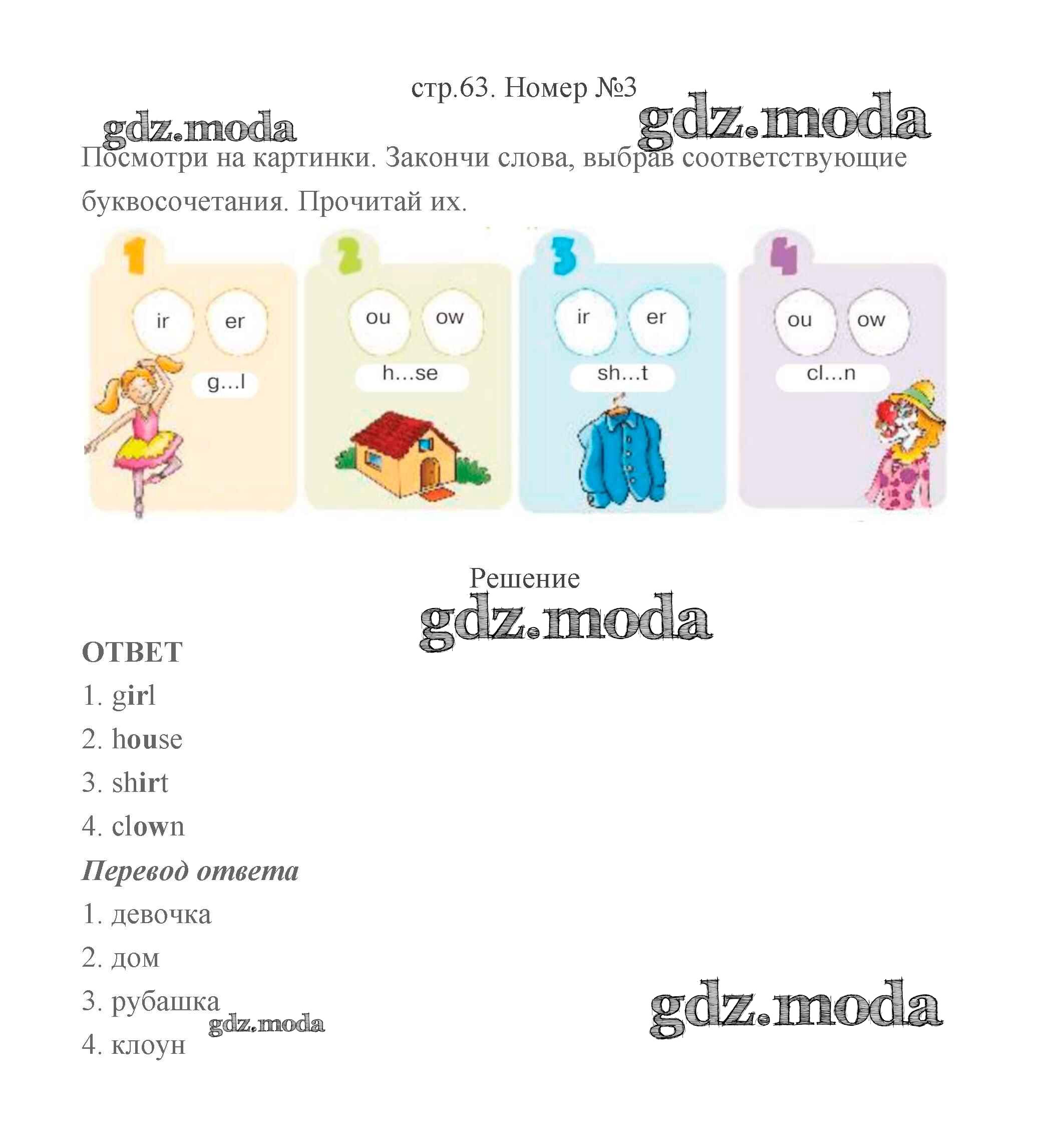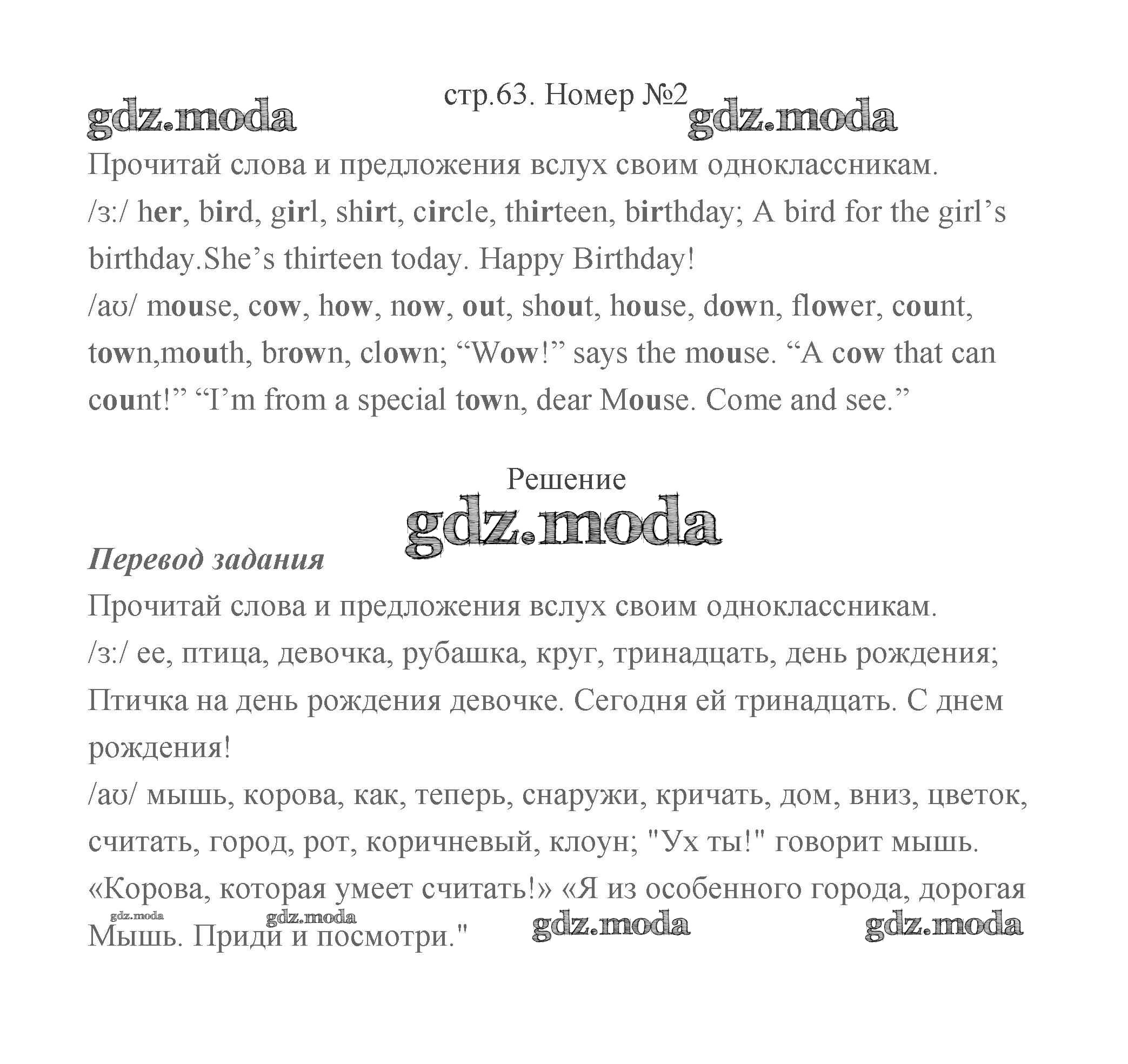 ГДЗ решение к заданию № 63 Английский язык 2 класс Баранова (в 2-х частях) Просвещение 2016 Часть 1, Часть 2 Углубленный уровень ФГОС бесплатно на гдз.мода!