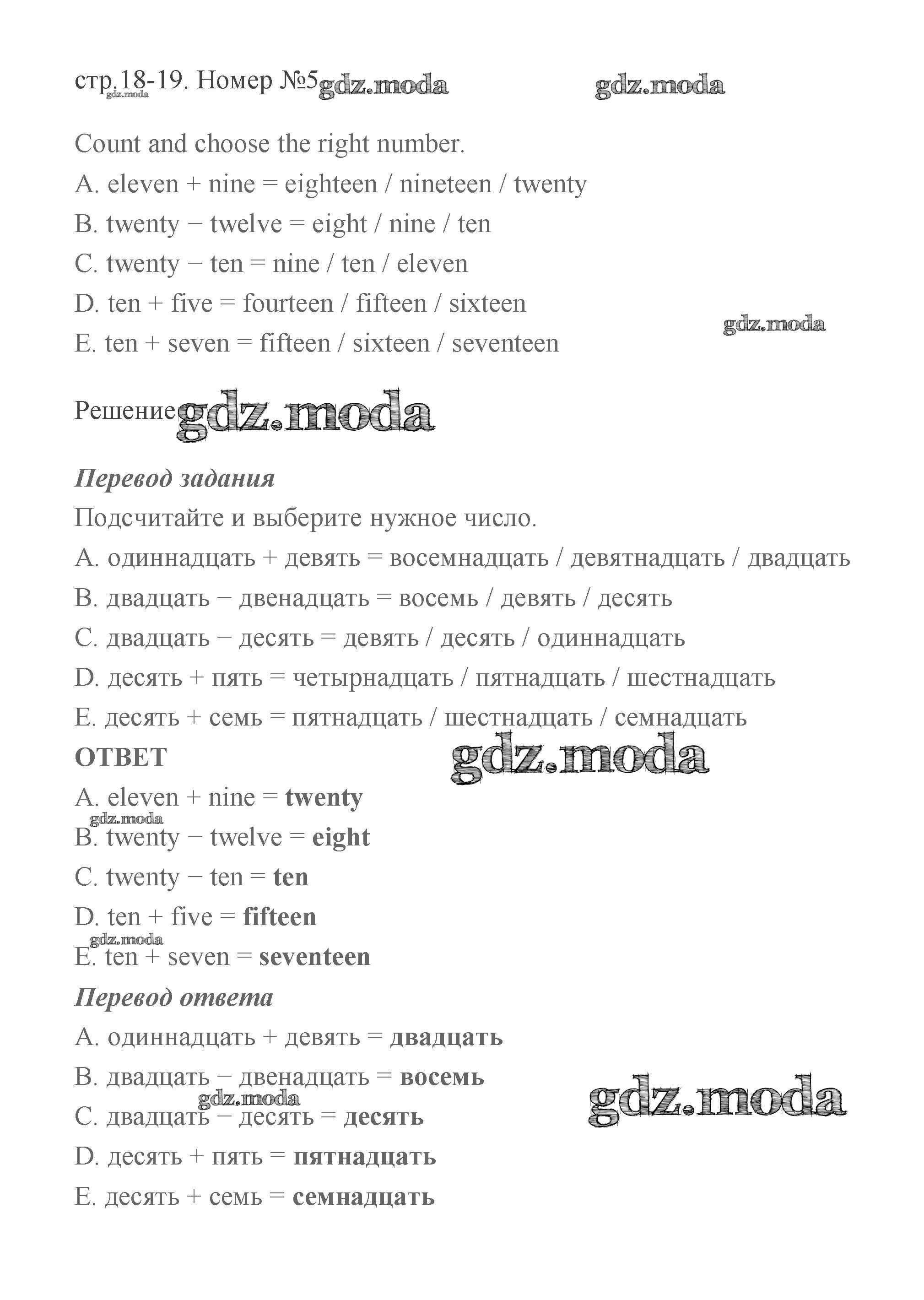 ГДЗ решение к заданию № 18-19 Английский язык 2 класс Баранова (в 2-х частях) Просвещение 2016 Часть 1, Часть 2 Углубленный уровень ФГОС бесплатно на гдз.мода!