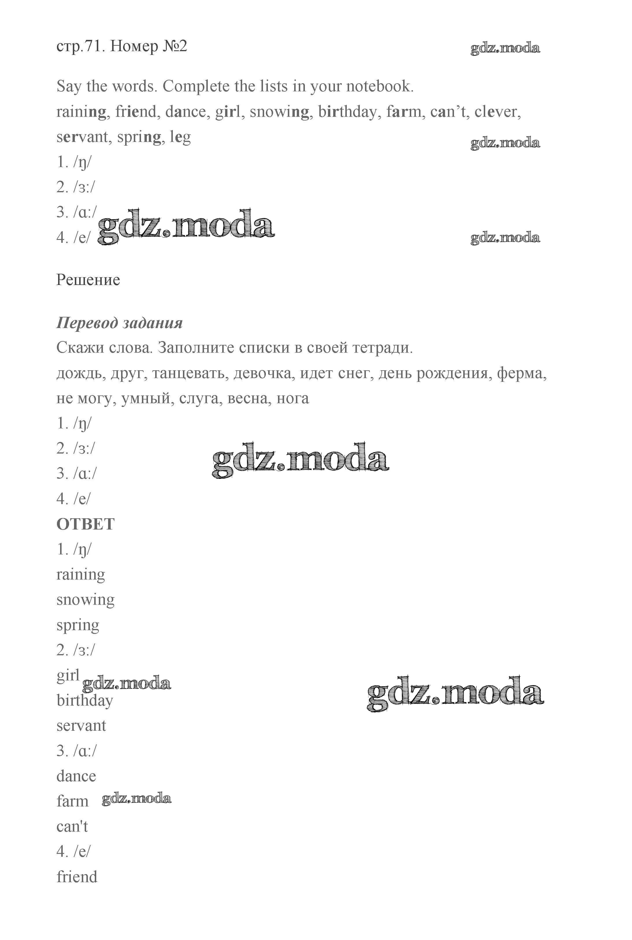 ГДЗ решение к заданию № 71 Английский язык 2 класс Баранова (в 2-х частях) Просвещение 2016 Часть 1, Часть 2 Углубленный уровень ФГОС бесплатно на гдз.мода!
