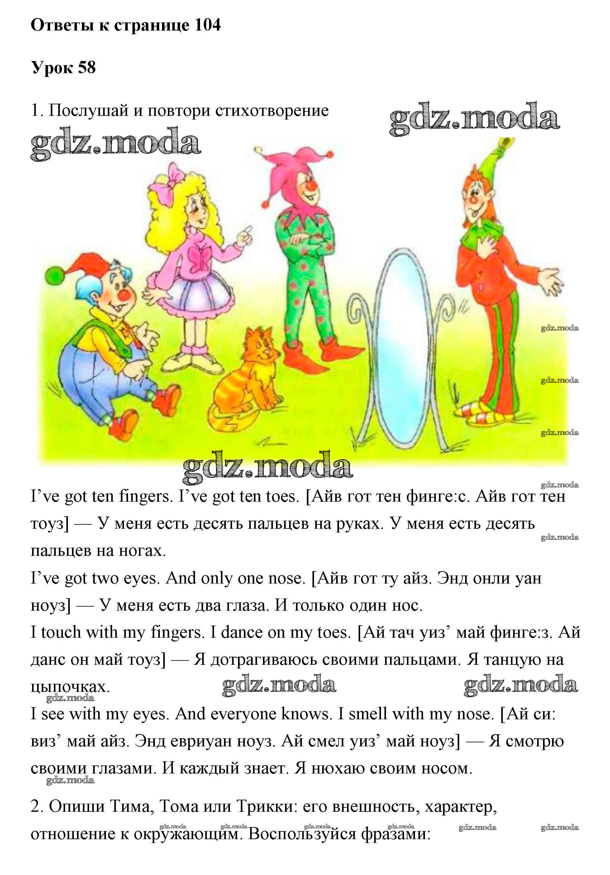 ОТВЕТ на задание № 104 Учебник по Английскому языку 2 класс Биболетова Enjoy English