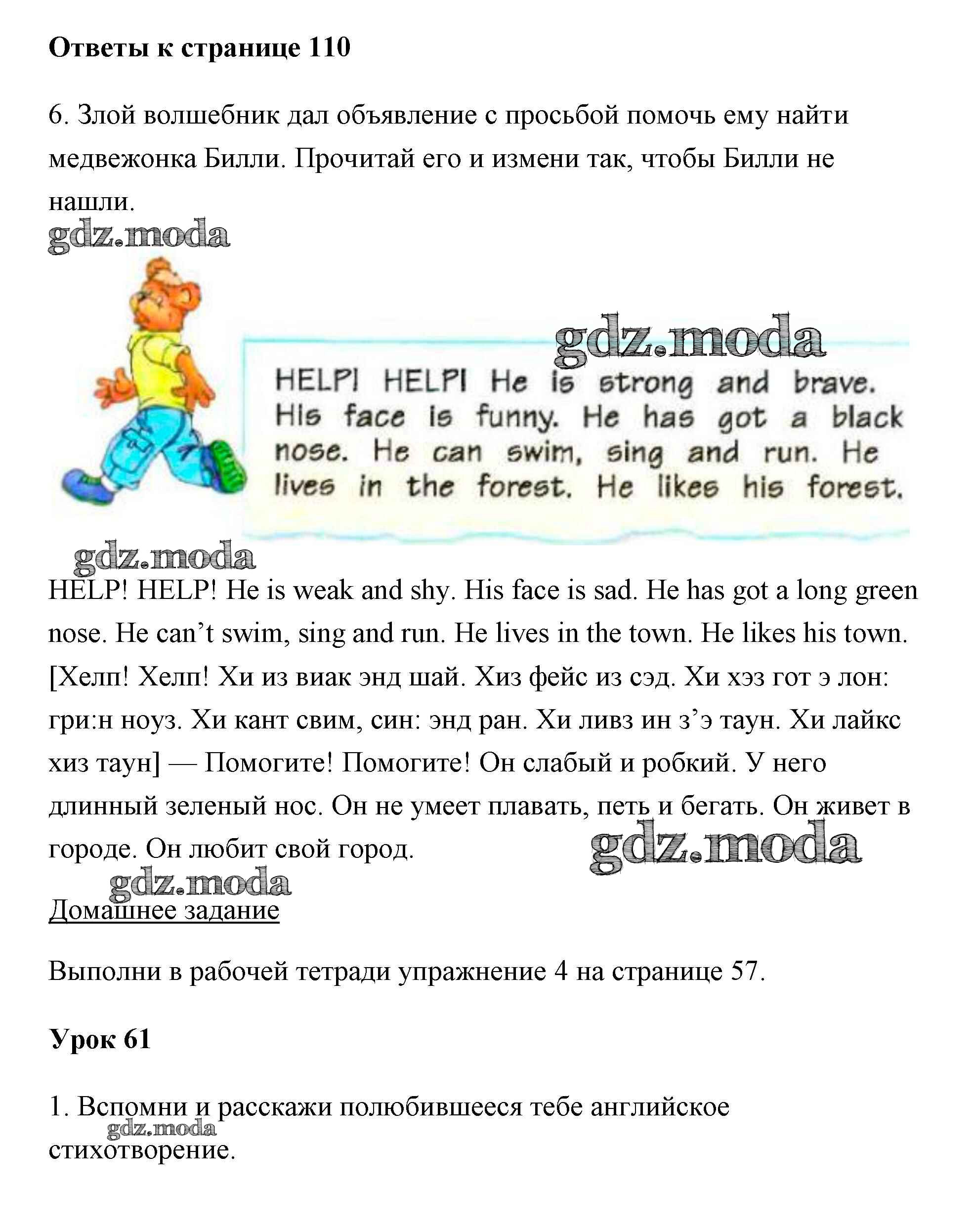 ОТВЕТ на задание № 110 Учебник по Английскому языку 2 класс Биболетова Enjoy English