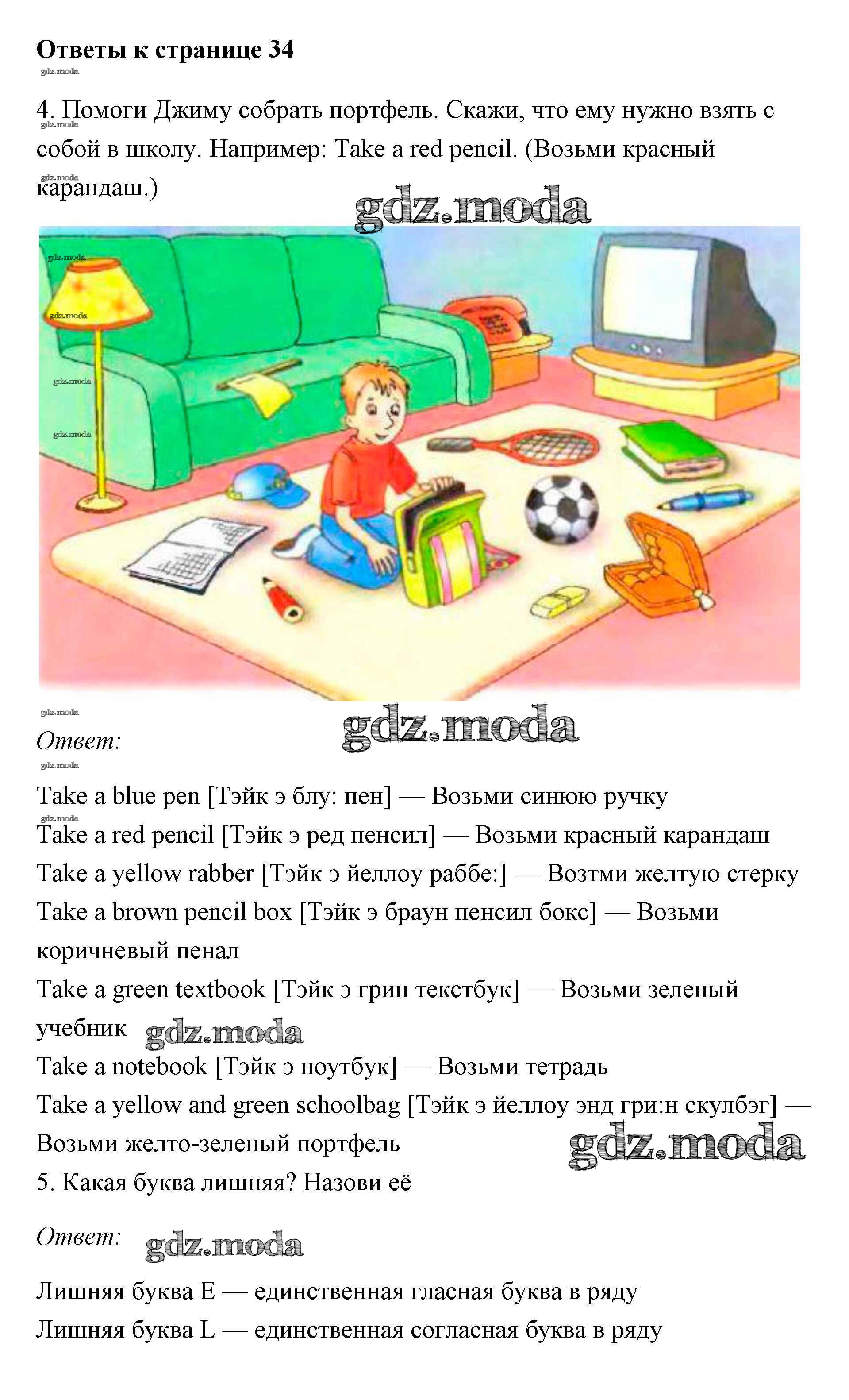 ГДЗ решение к заданию № 34 Английский язык 2 класс Биболетова Enjoy English Титул 2012 ФГОС бесплатно на гдз.мода!