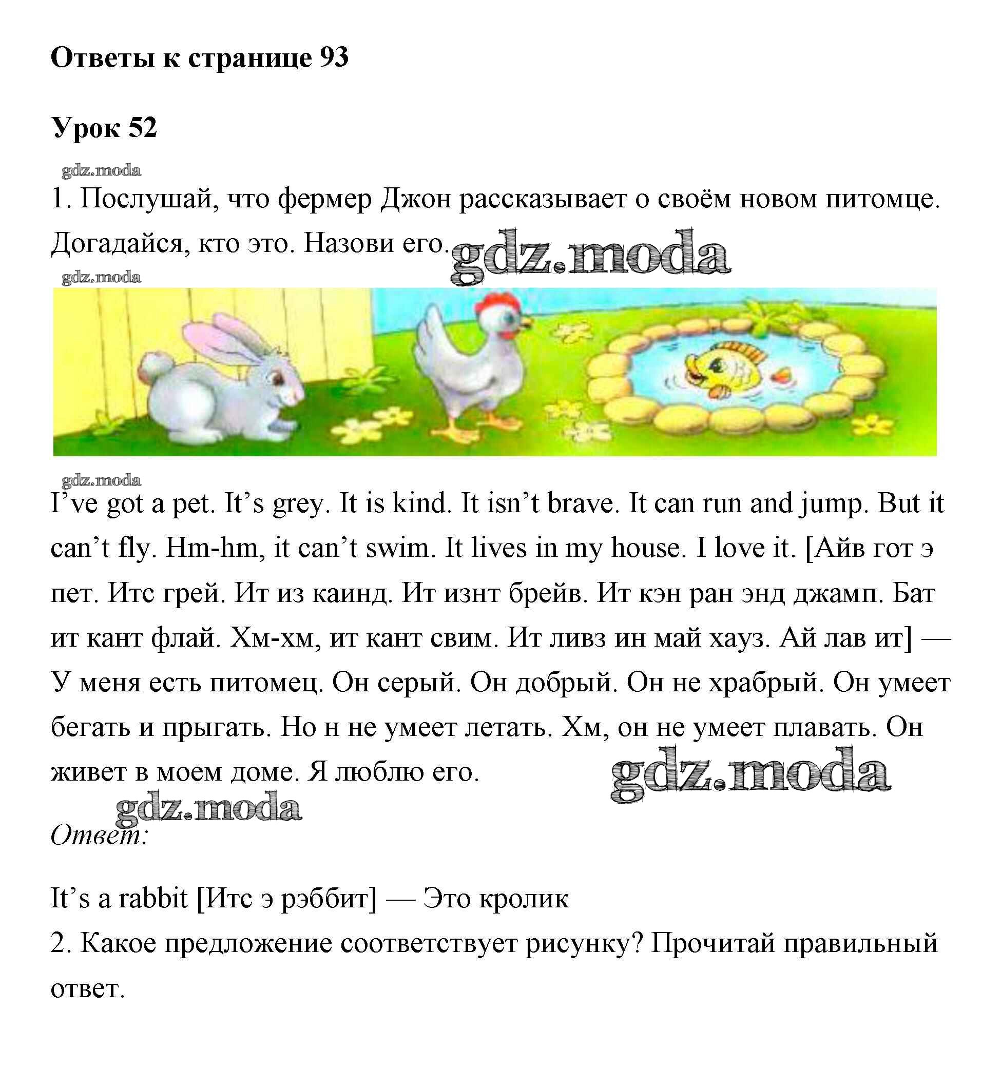 ОТВЕТ на задание № 93 Учебник по Английскому языку 2 класс Биболетова Enjoy English