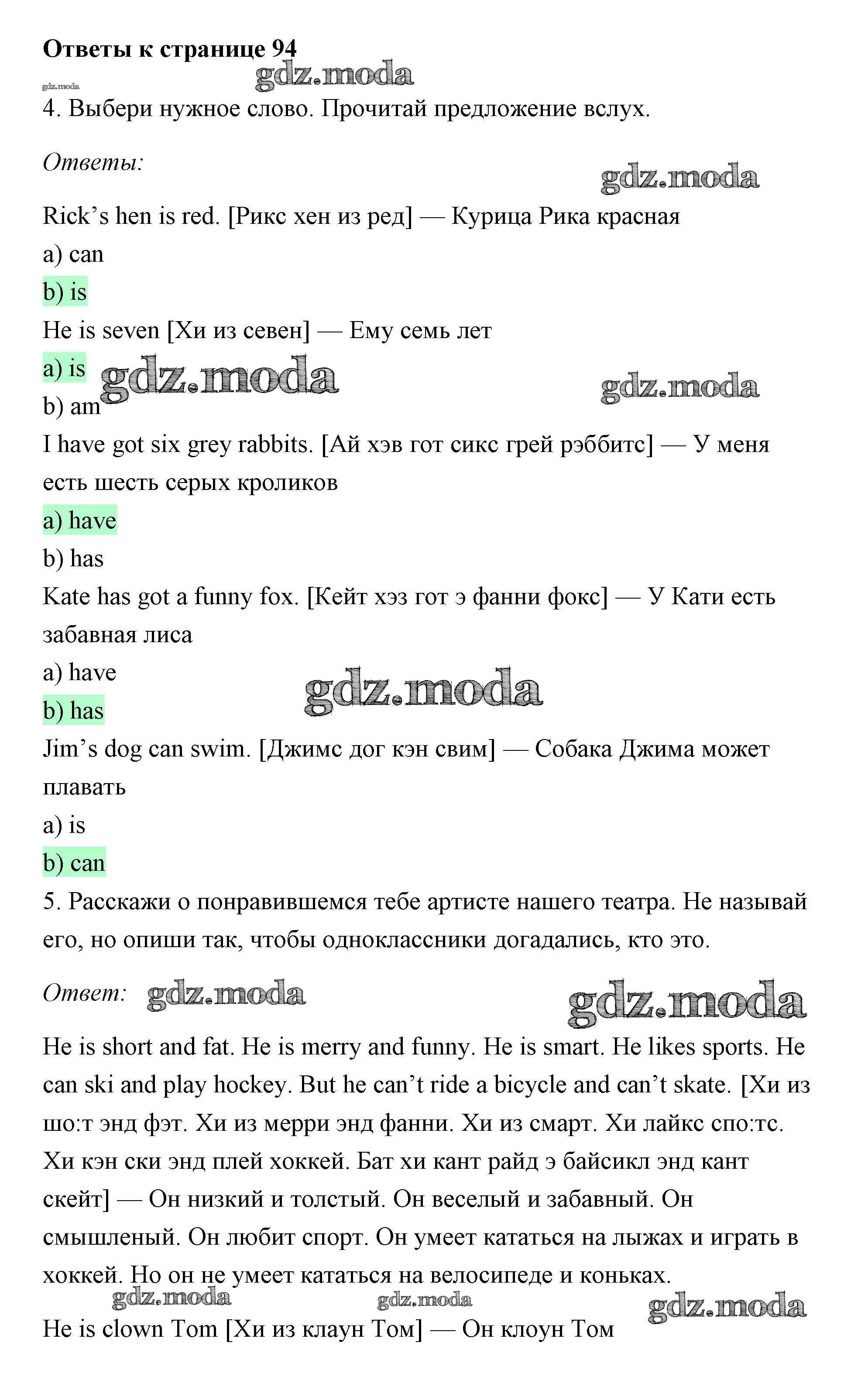 ГДЗ решение к заданию № 94 Английский язык 2 класс Биболетова Enjoy English Титул 2012 ФГОС бесплатно на гдз.мода!