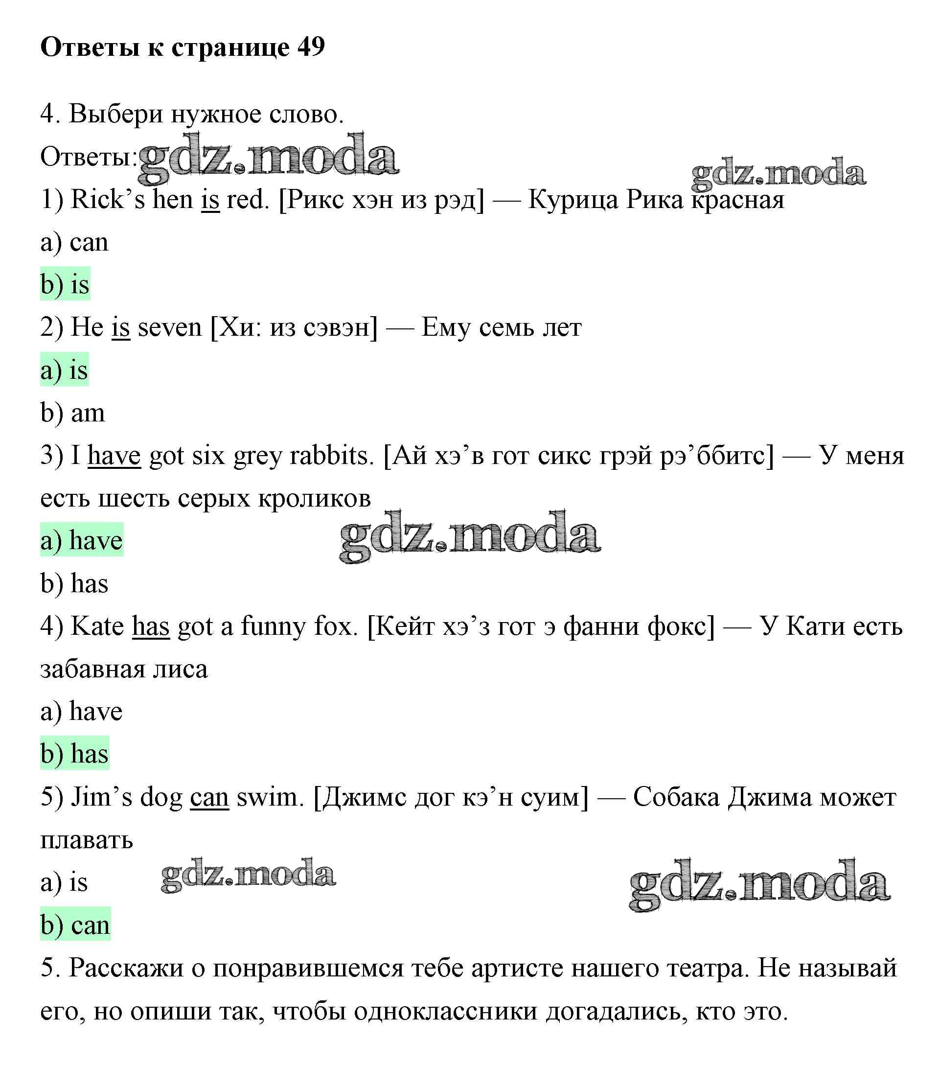 ГДЗ решение к заданию № 49 Английский язык 2 класс рабочая тетрадь Биболетова Enjoy English Титул 2015 ФГОС бесплатно на гдз.мода!