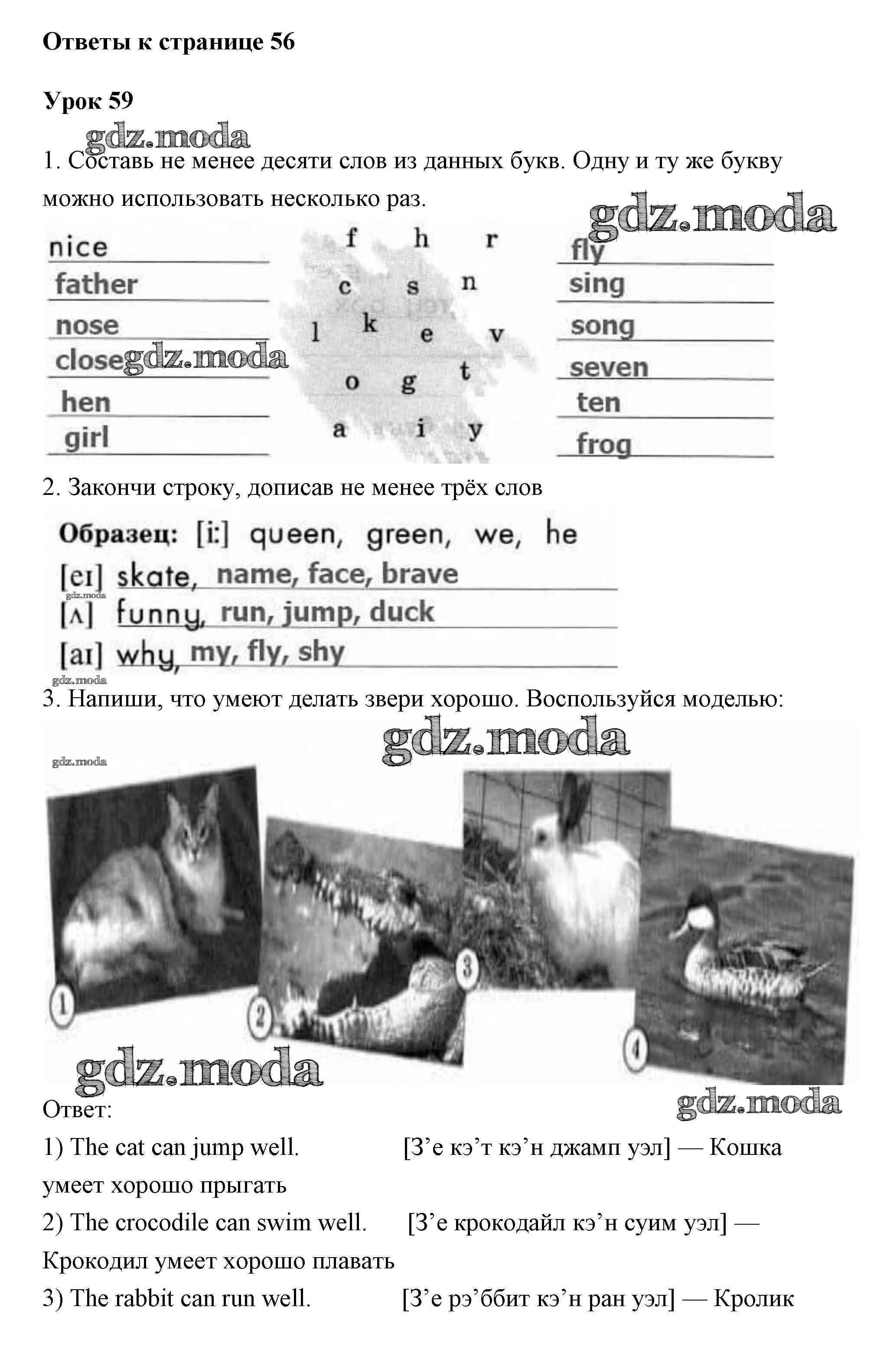 ОТВЕТ на задание № 56 Рабочая тетрадь с контрольными работами по Английскому языку 2 класс Биболетова Enjoy English