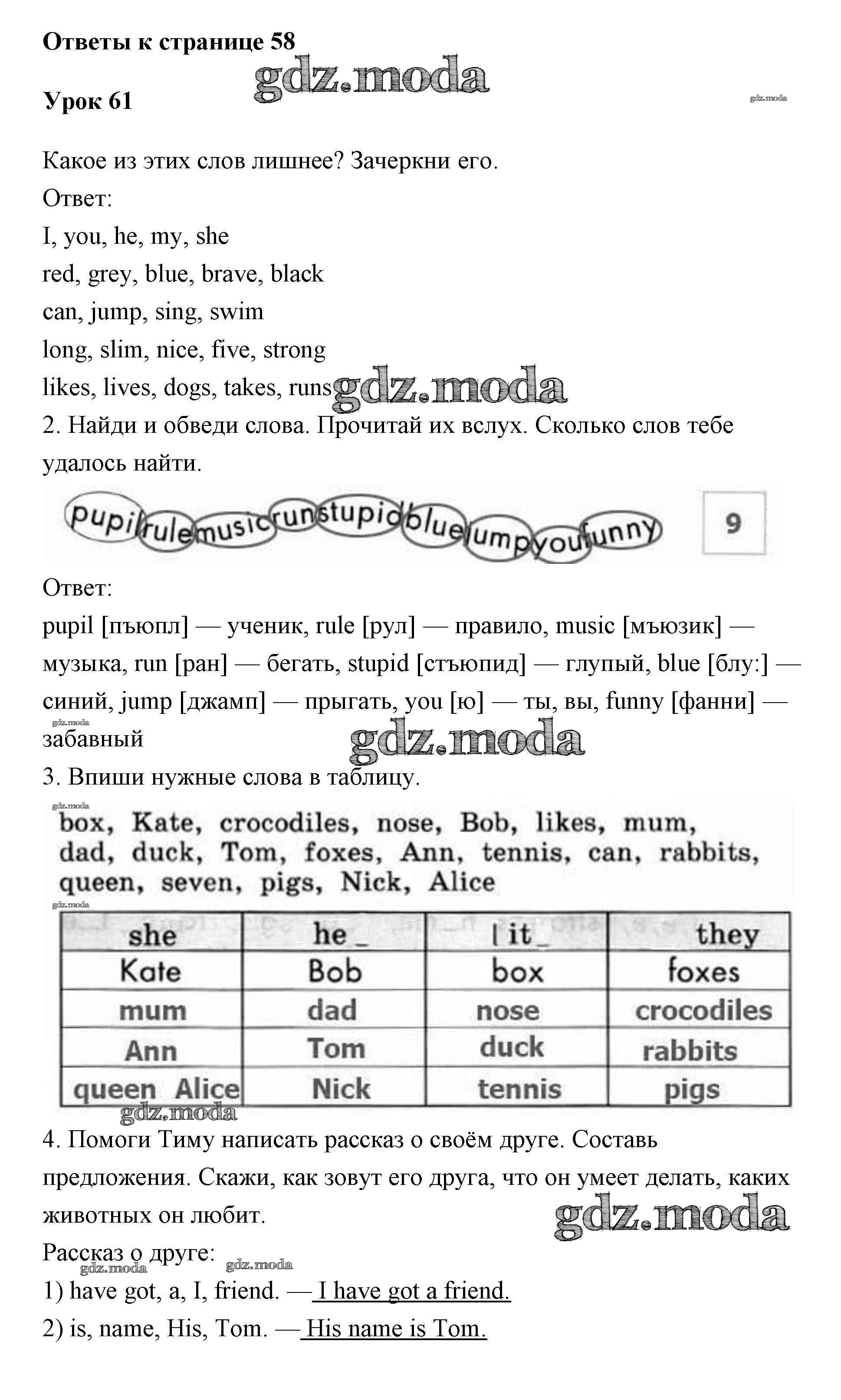 ГДЗ решение к заданию № 58 Английский язык 2 класс рабочая тетрадь Биболетова Enjoy English Титул 2015 ФГОС бесплатно на гдз.мода!
