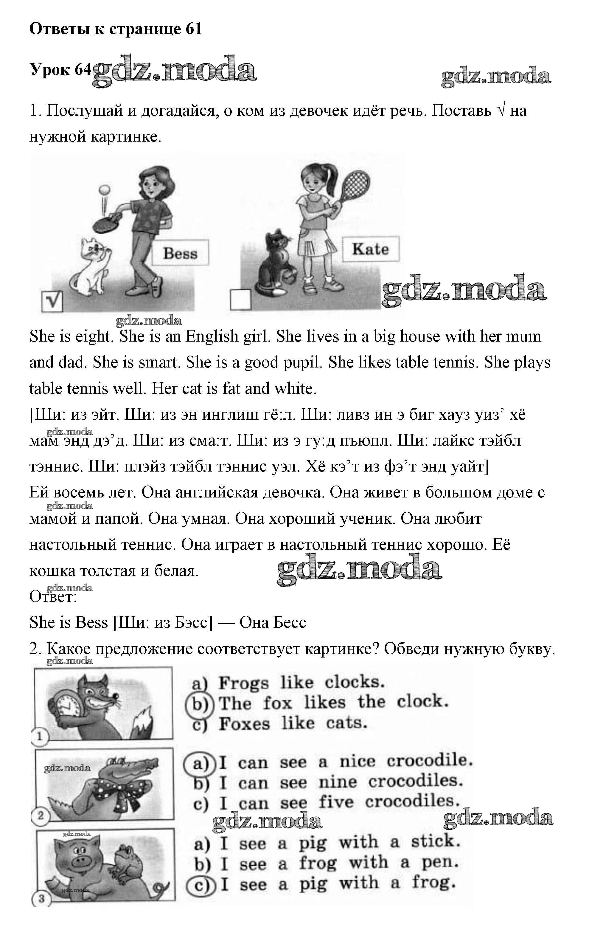ОТВЕТ на задание № 61 Рабочая тетрадь с контрольными работами по Английскому языку 2 класс Биболетова Enjoy English