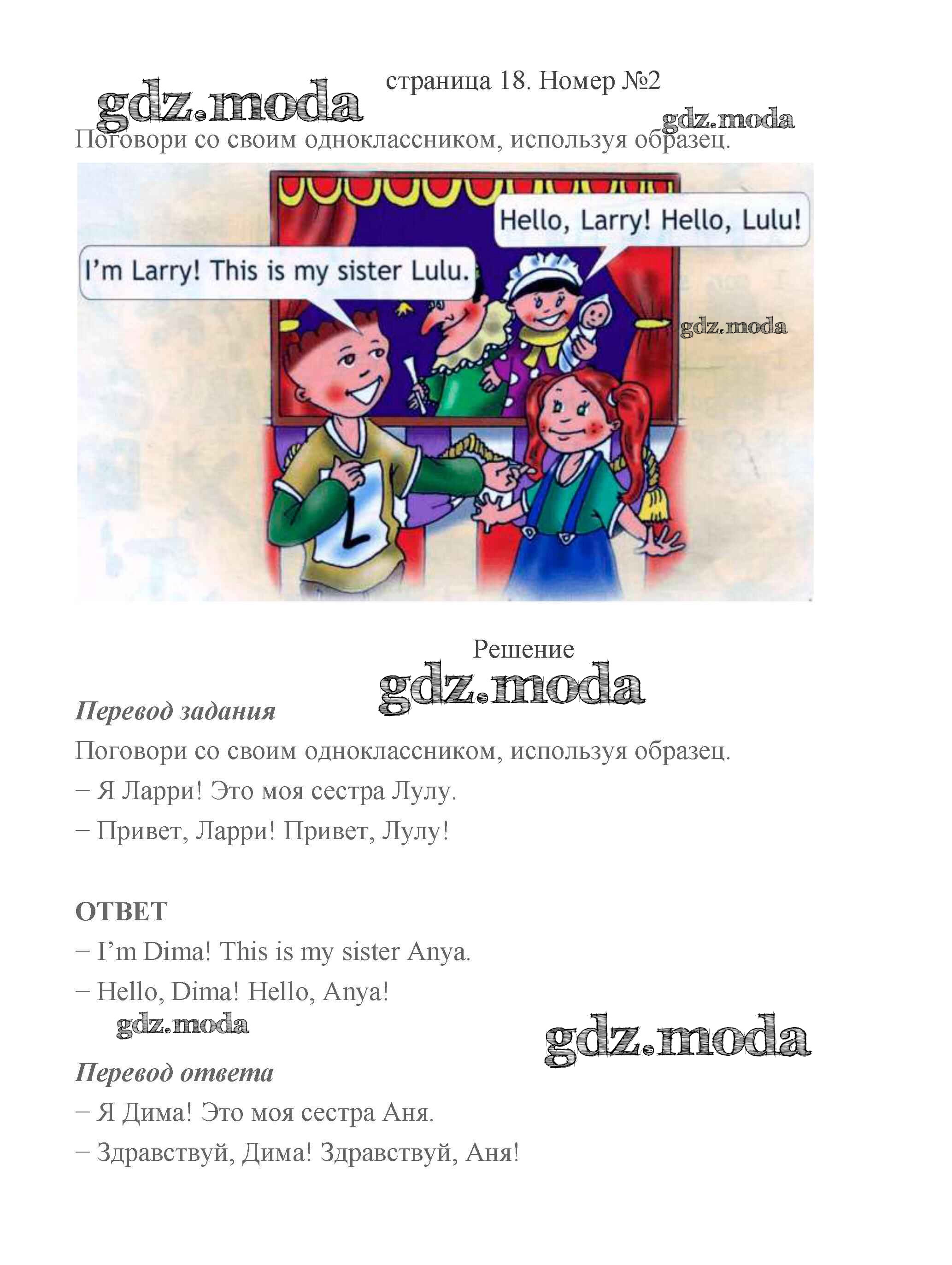 ГДЗ решение к заданию № 18 Английский язык 2 класс Быкова (в 2-х частях) Просвещение 2021 Часть 1, Часть 2 бесплатно на гдз.мода!