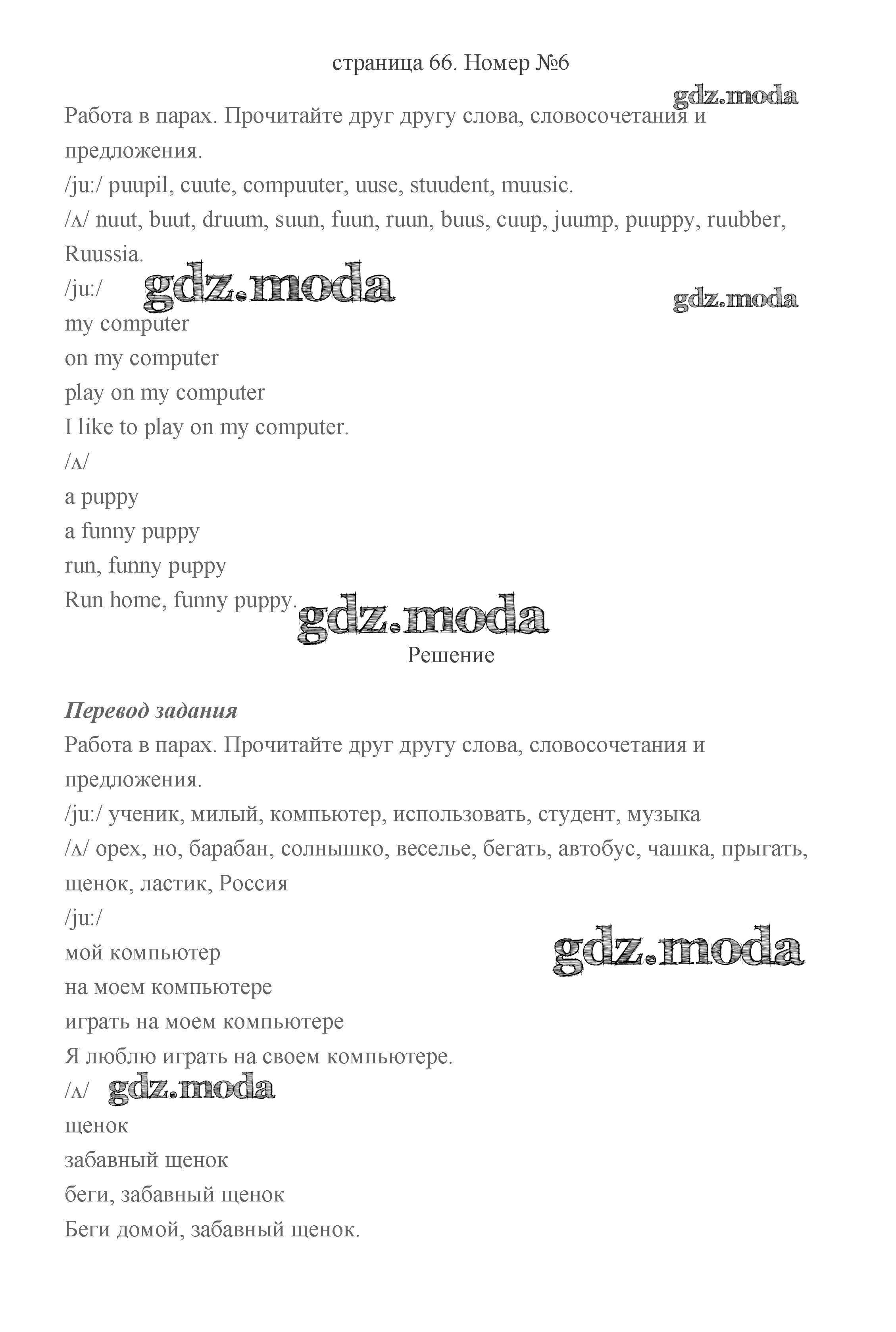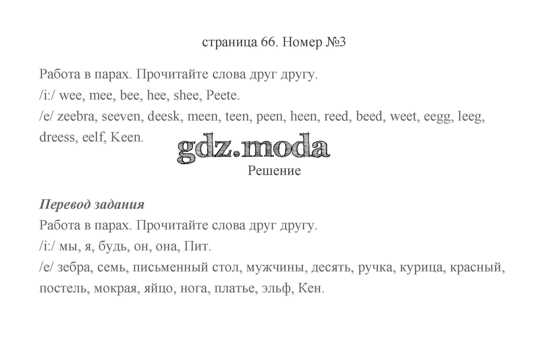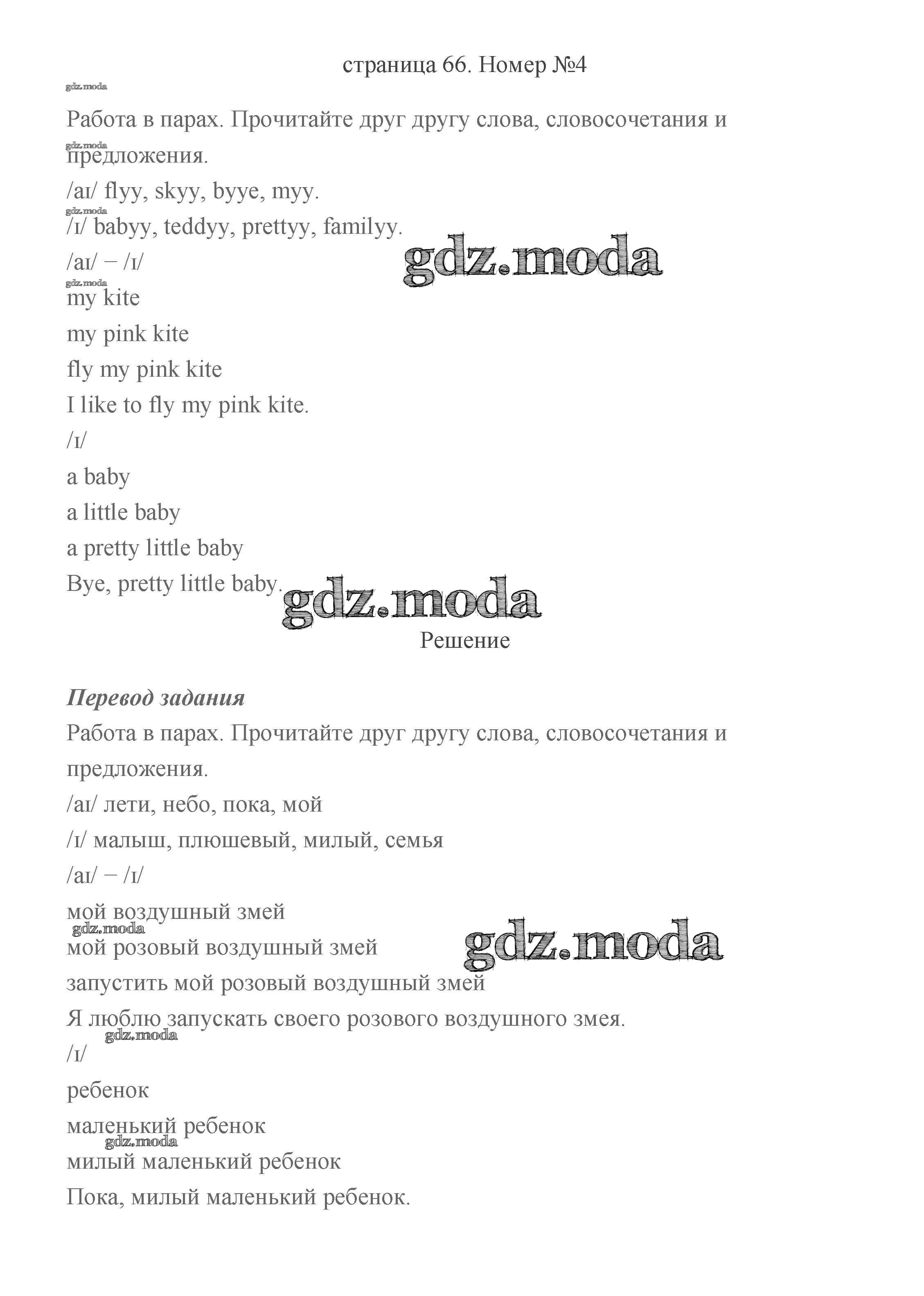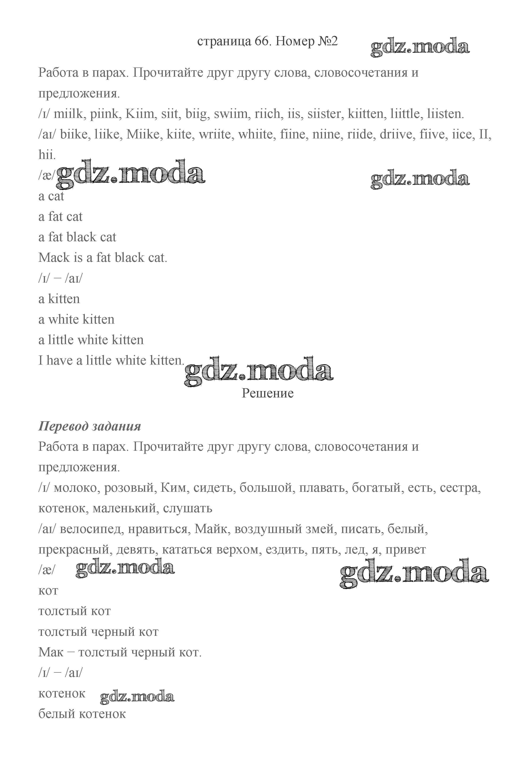 ГДЗ решение к заданию № 66 Английский язык 2 класс Быкова (в 2-х частях) Просвещение 2021 Часть 1, Часть 2 бесплатно на гдз.мода!