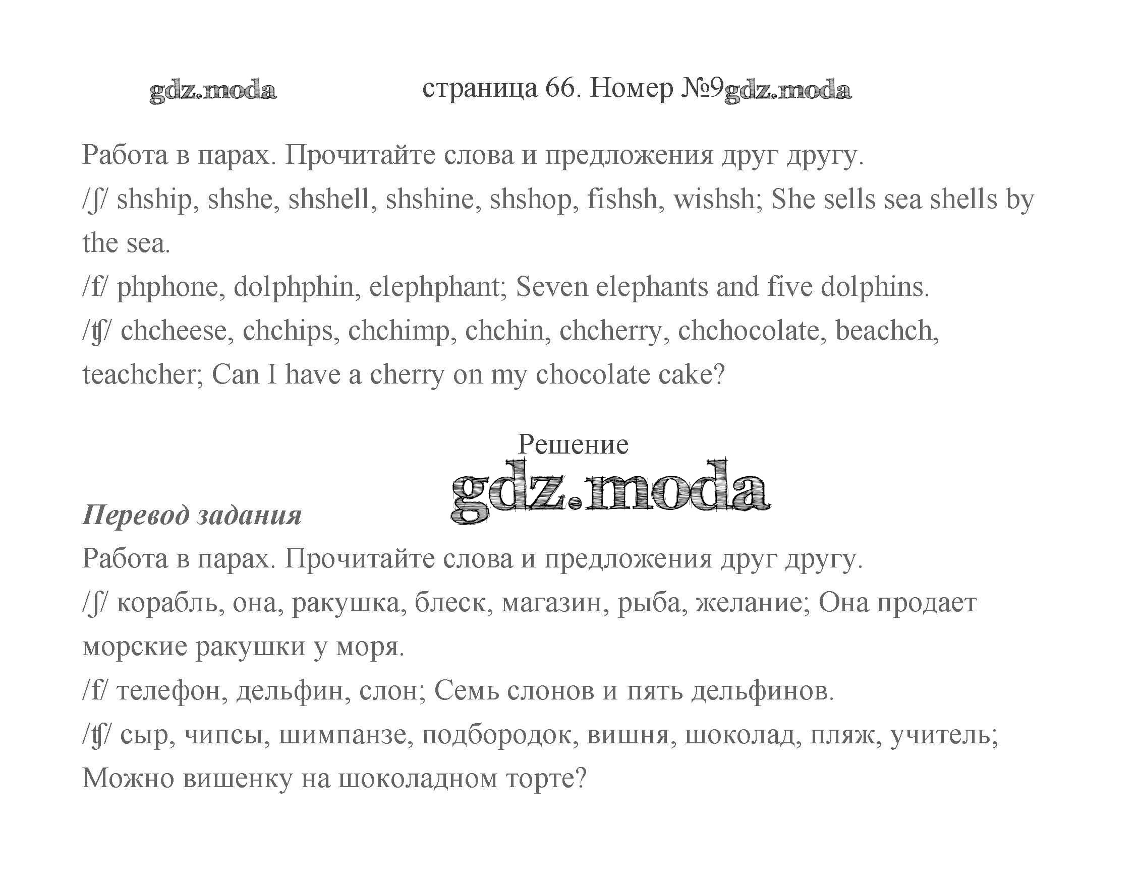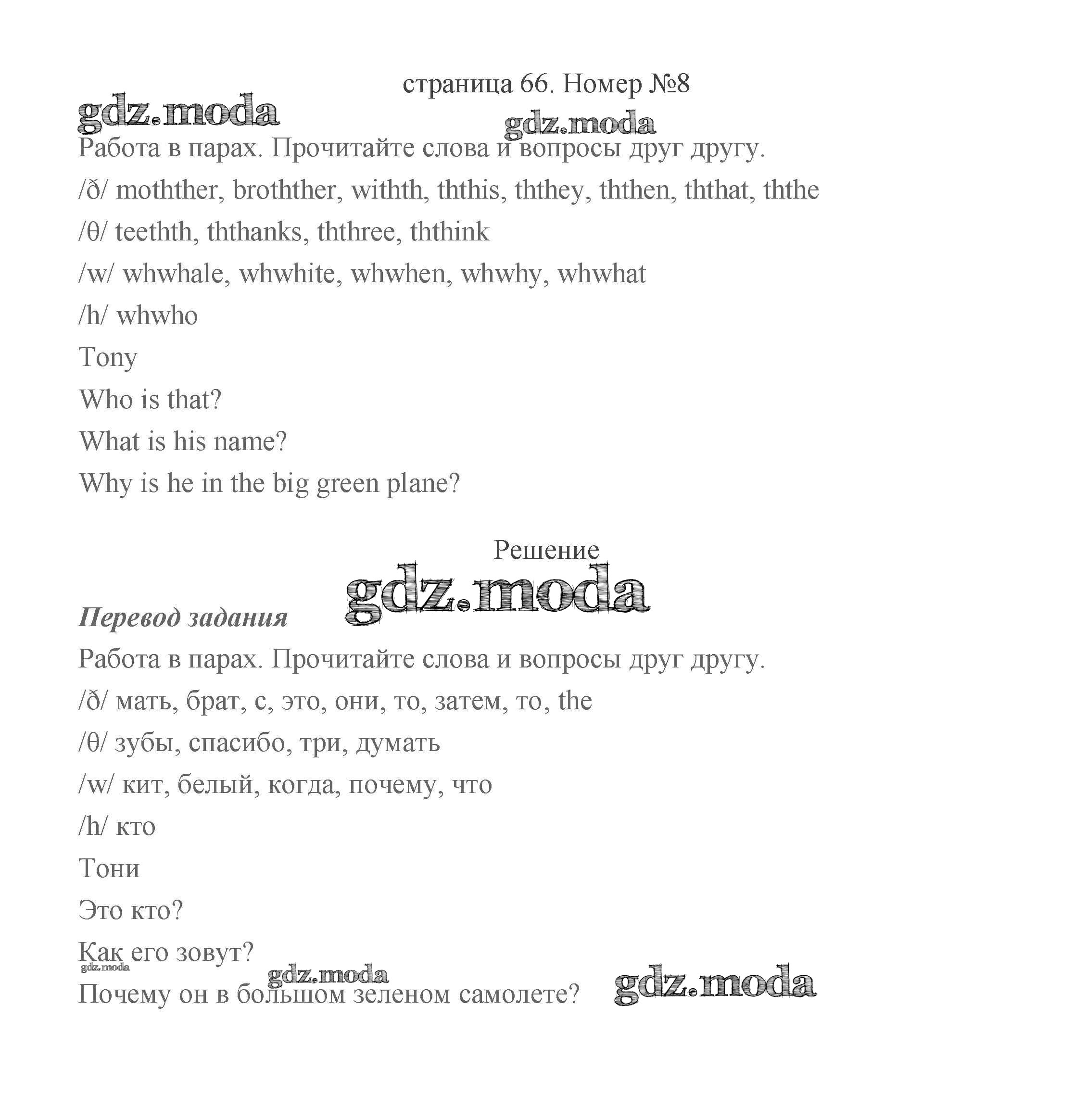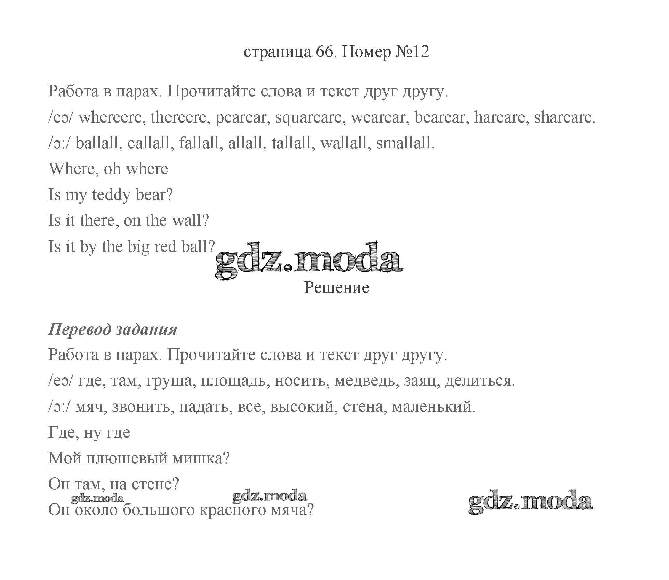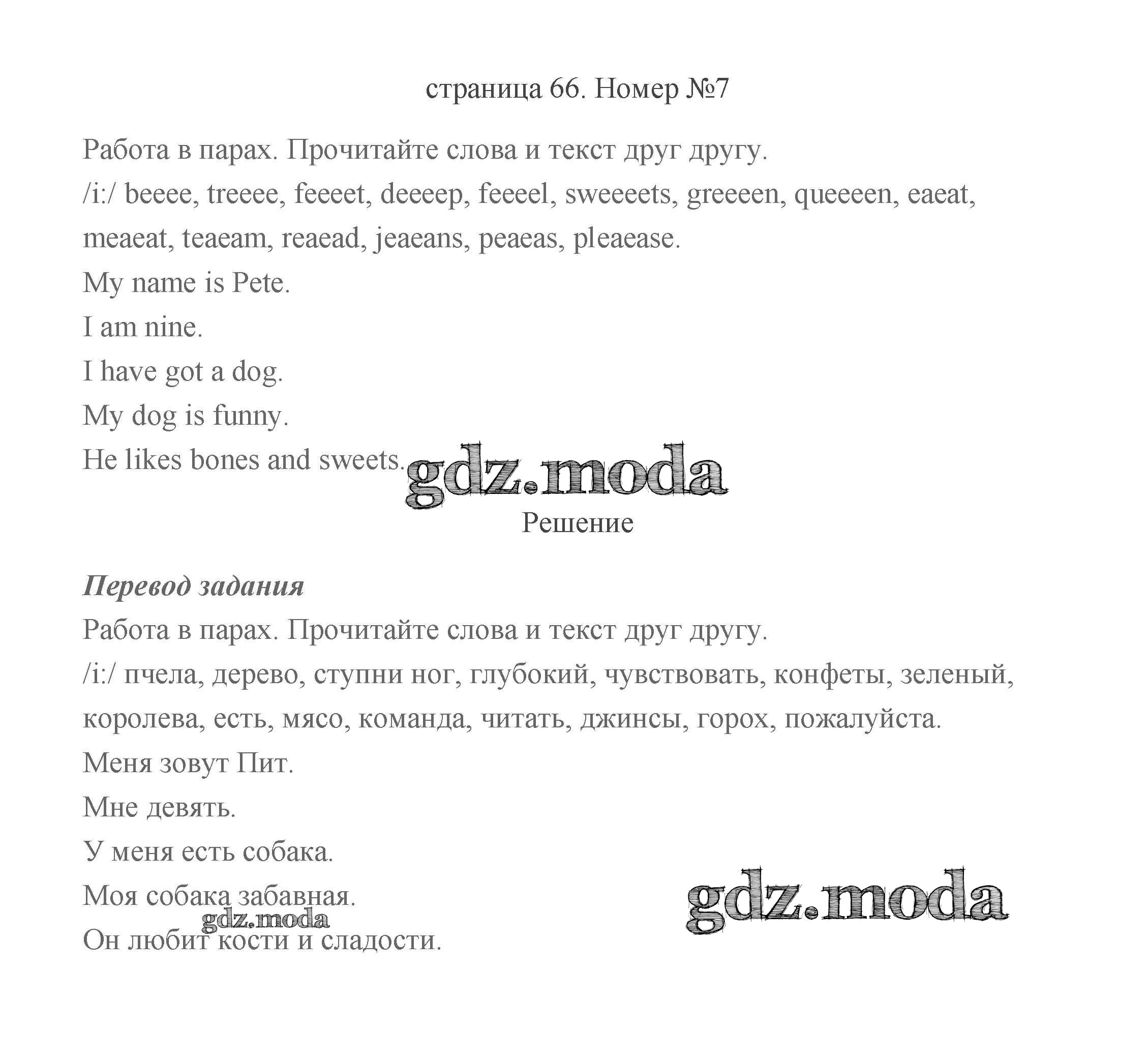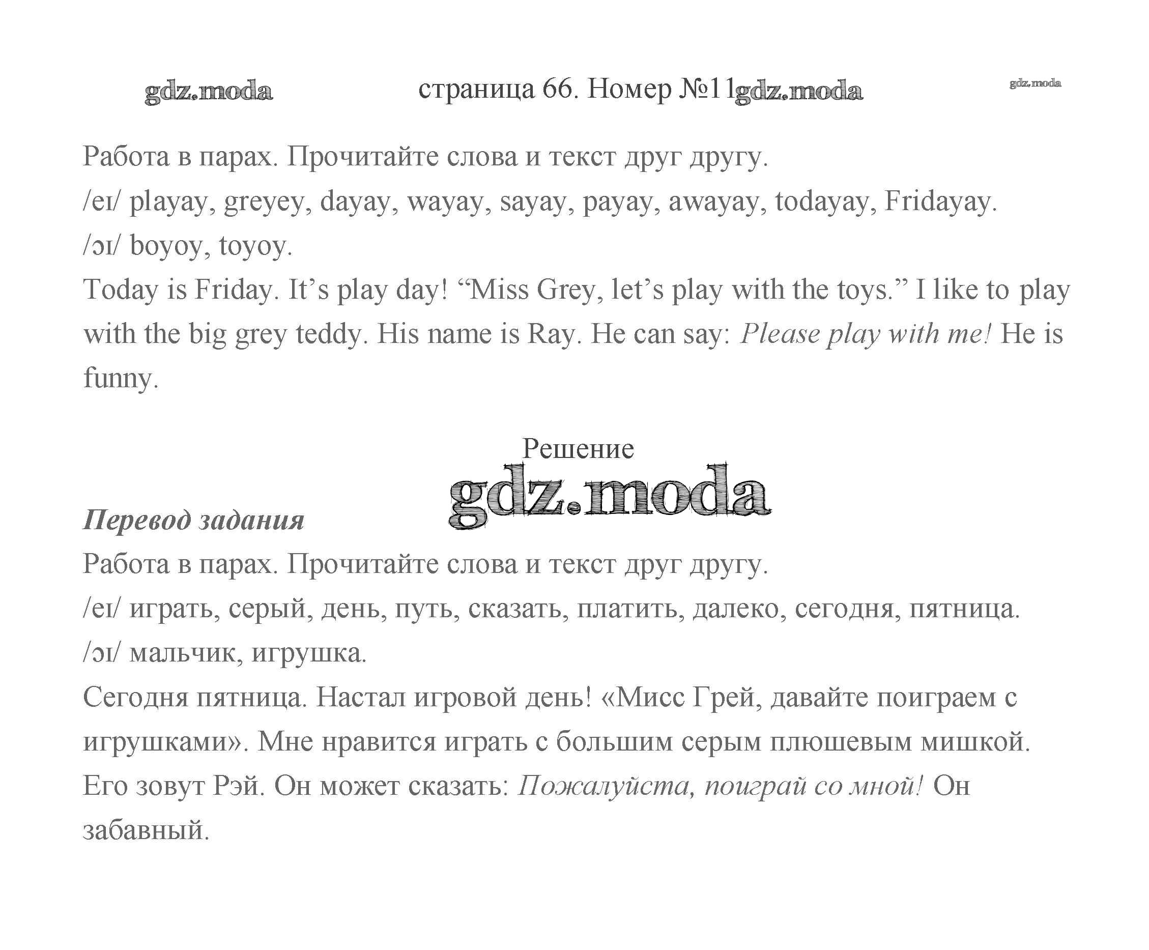 ГДЗ решение к заданию № 66 Английский язык 2 класс Быкова (в 2-х частях) Просвещение 2021 Часть 1, Часть 2 бесплатно на гдз.мода!