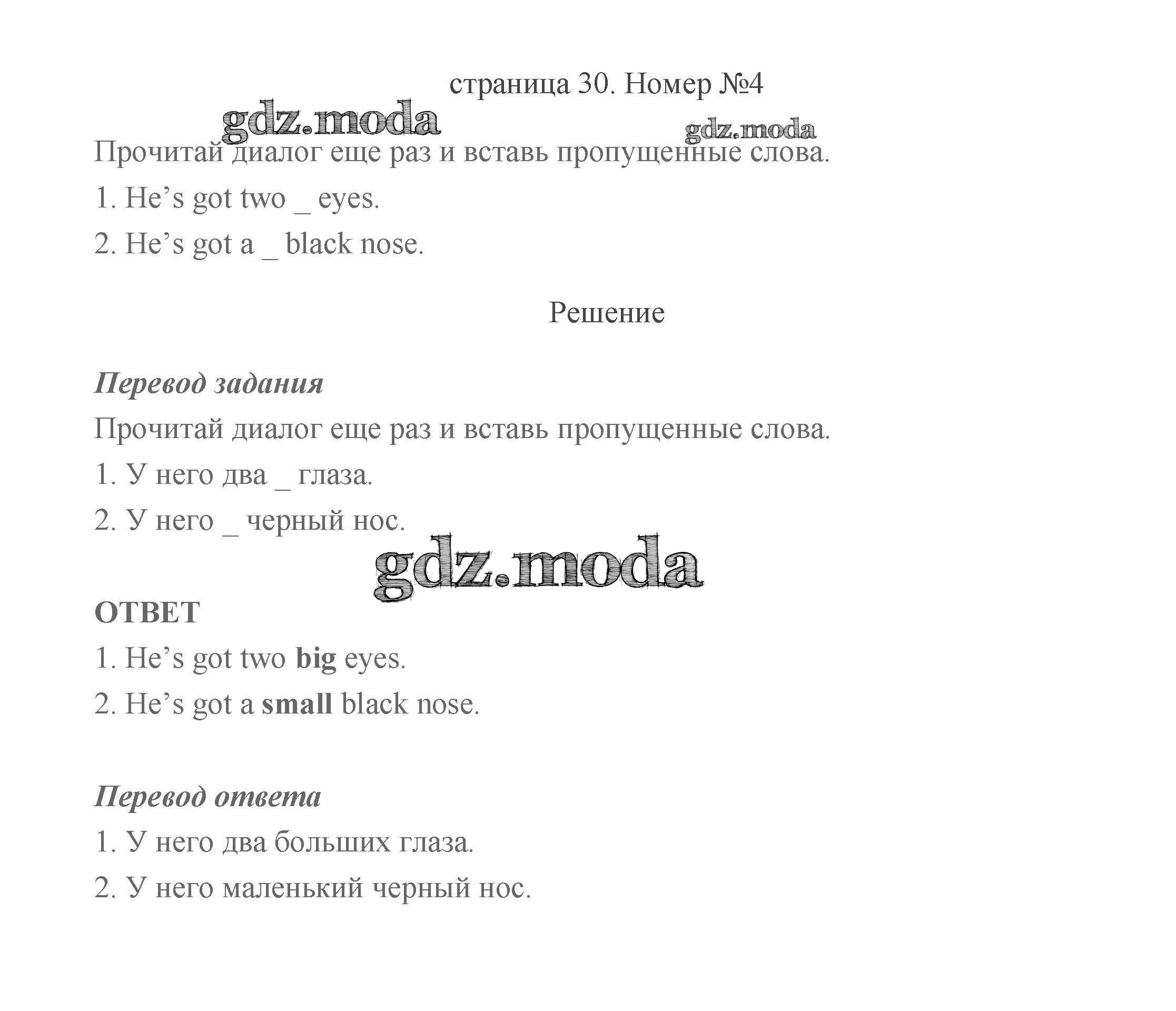 ГДЗ решение к заданию № 30 Английский язык 2 класс Быкова (в 2-х частях) Просвещение 2021 Часть 1, Часть 2 бесплатно на гдз.мода!