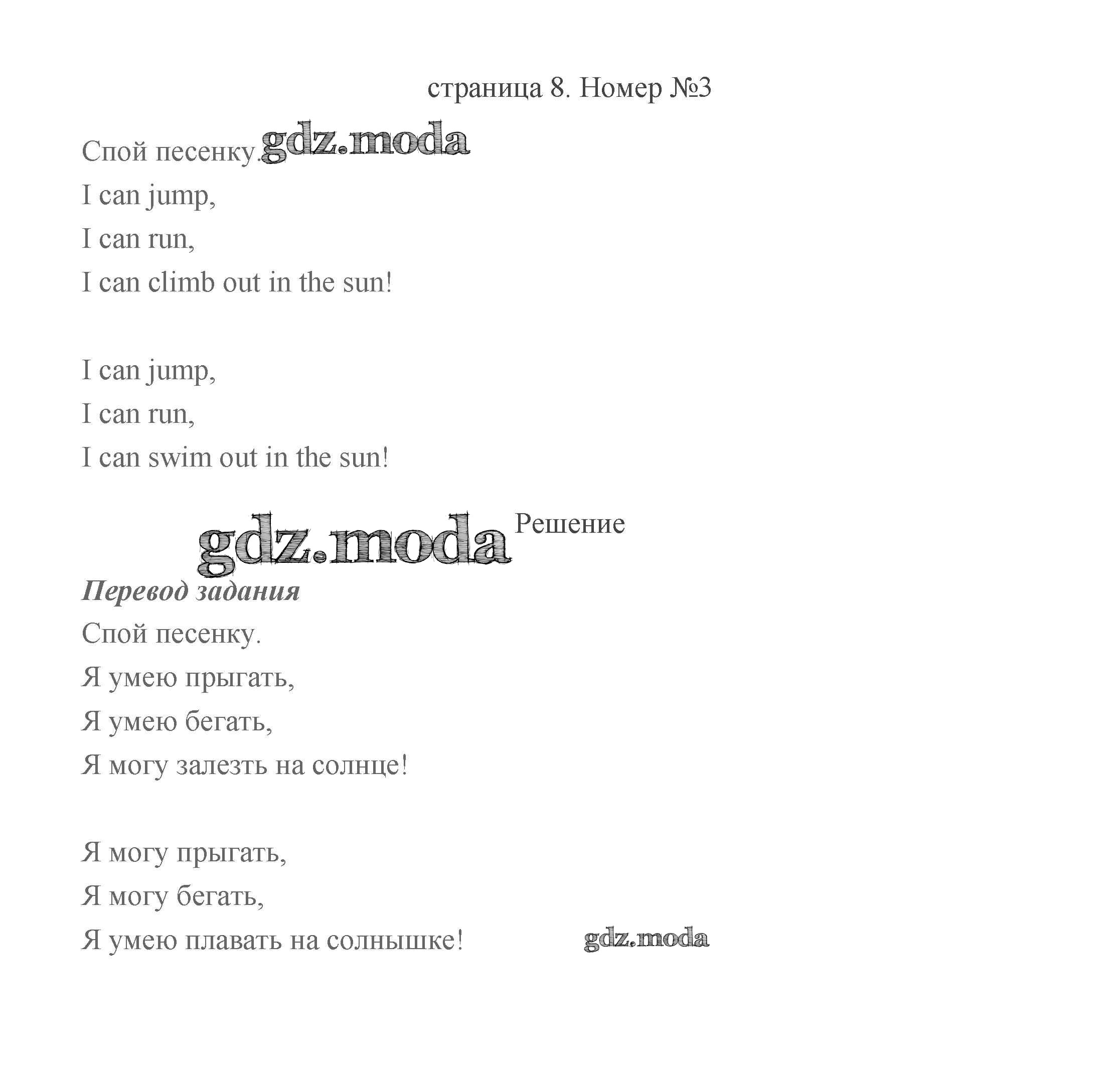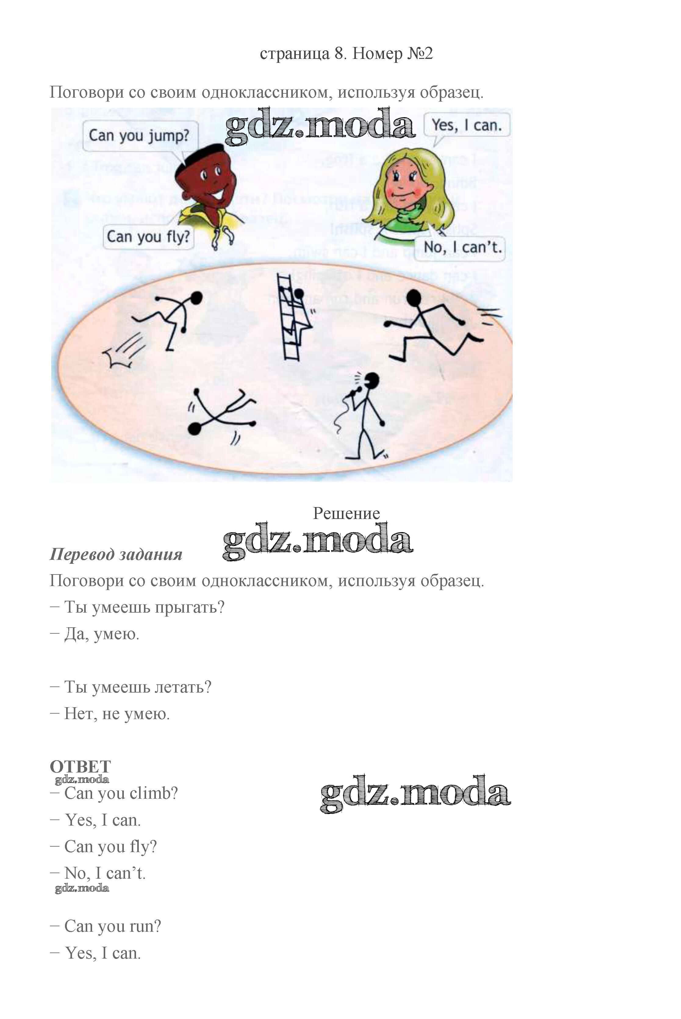 ГДЗ решение к заданию № 8 Английский язык 2 класс Быкова (в 2-х частях) Просвещение 2021 Часть 1, Часть 2 бесплатно на гдз.мода!