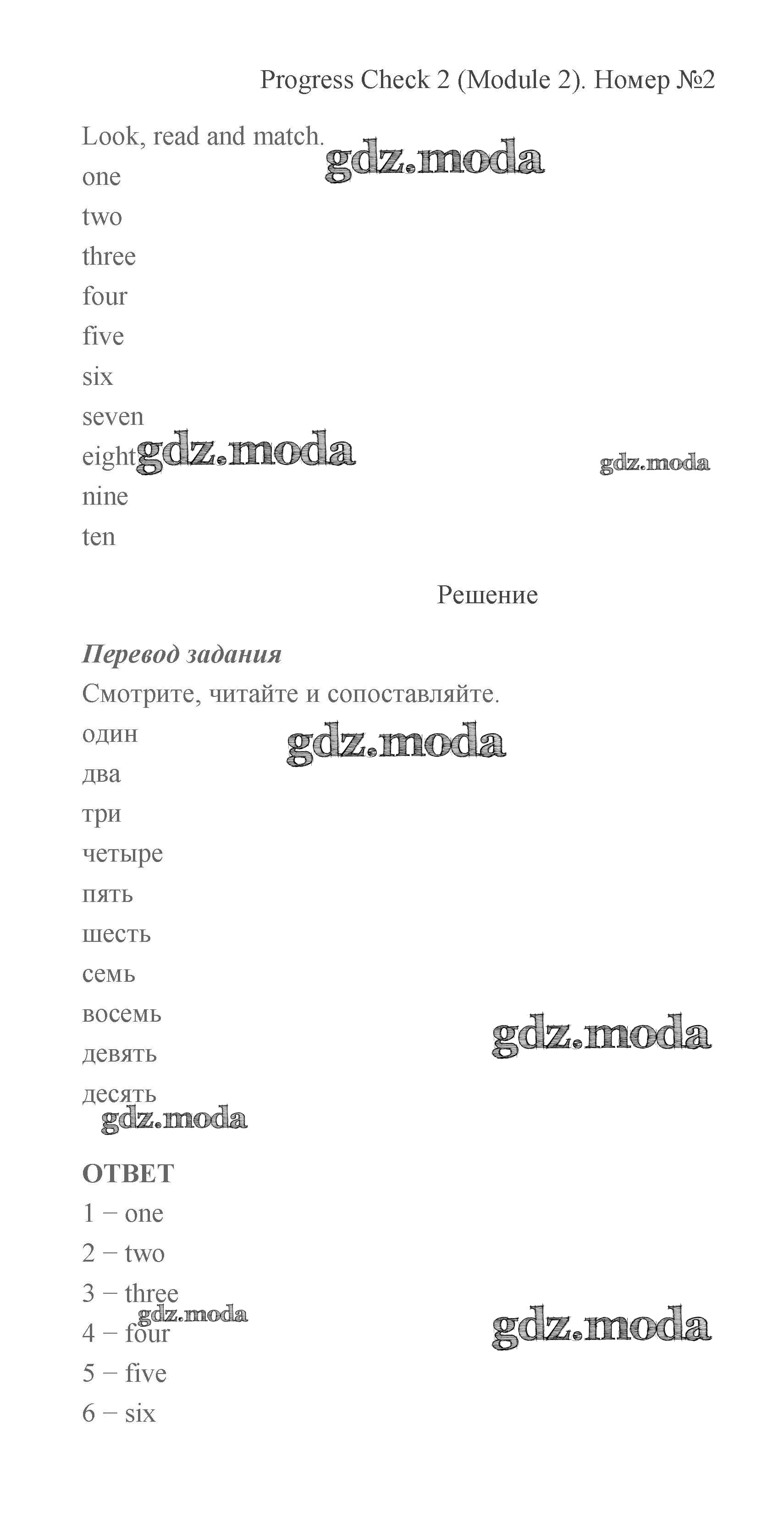 ГДЗ решение к заданию № 2 Английский язык 2 класс контрольные задания Быкова (Test Booklet Spotlight) Просвещение 2017 ФГОС бесплатно на гдз.мода!