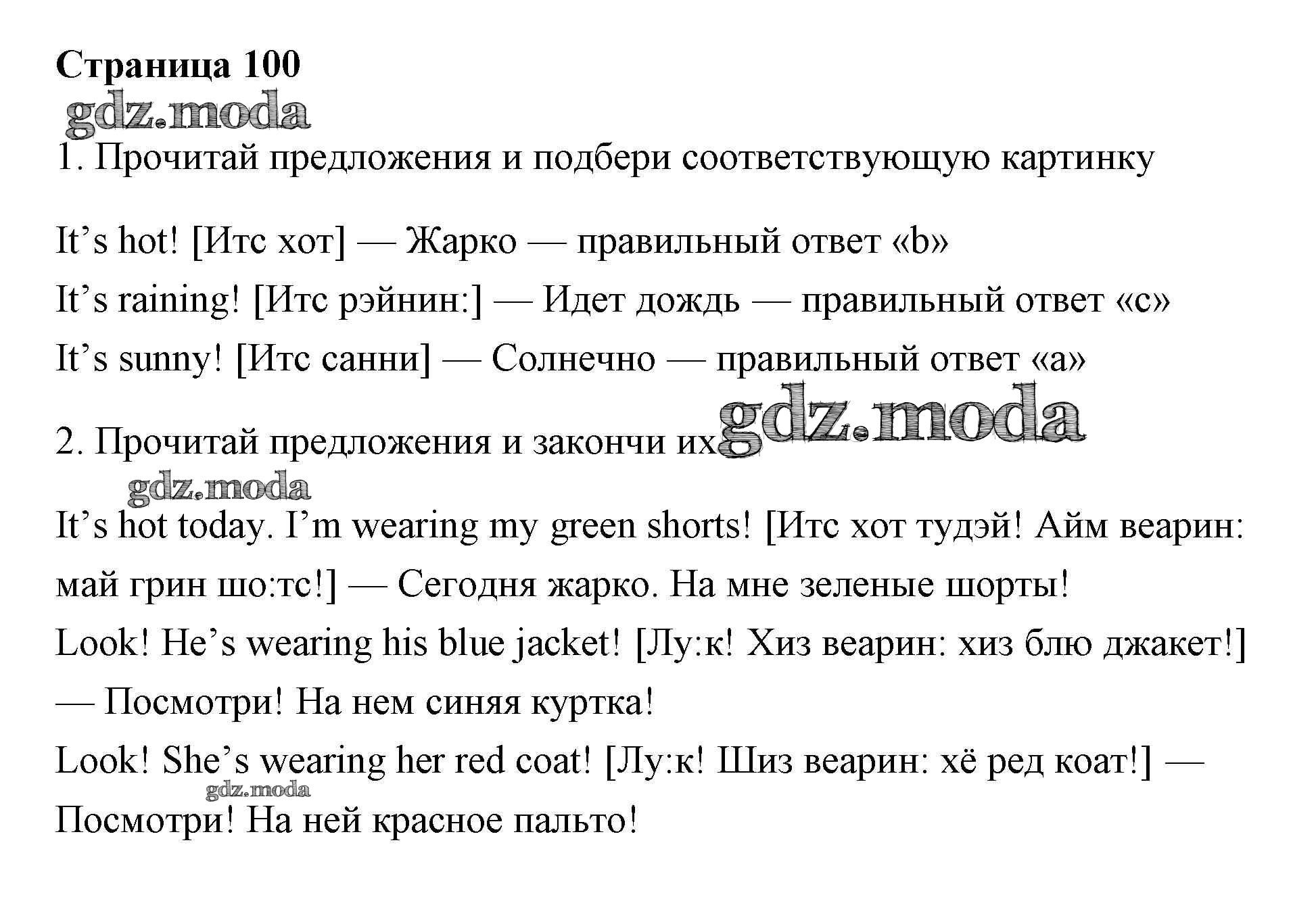 ОТВЕТ на задание № 100 Учебник по Английскому языку 2 класс Быкова Spotlight