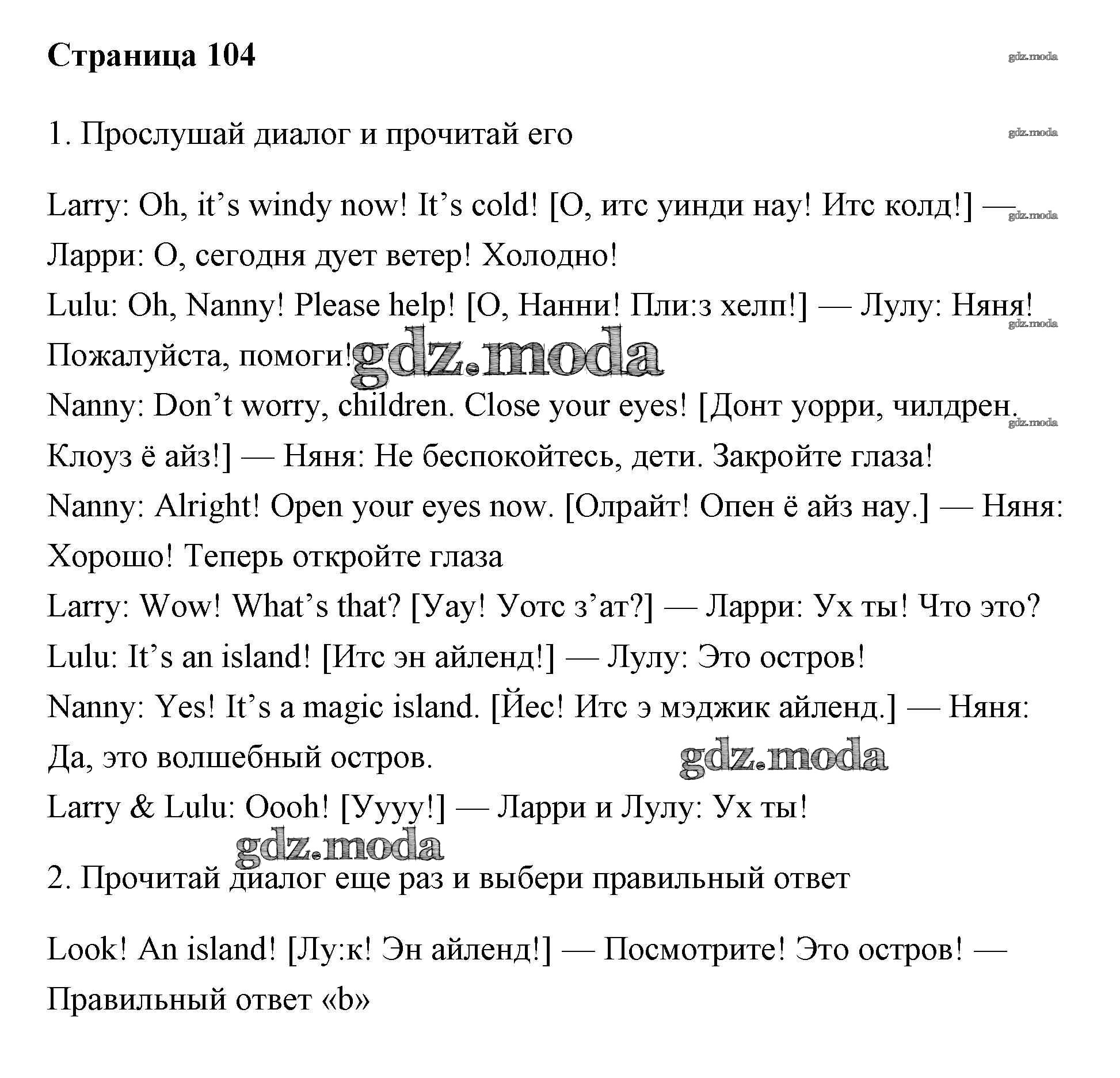 ОТВЕТ на задание № 104 Учебник по Английскому языку 2 класс Быкова Spotlight