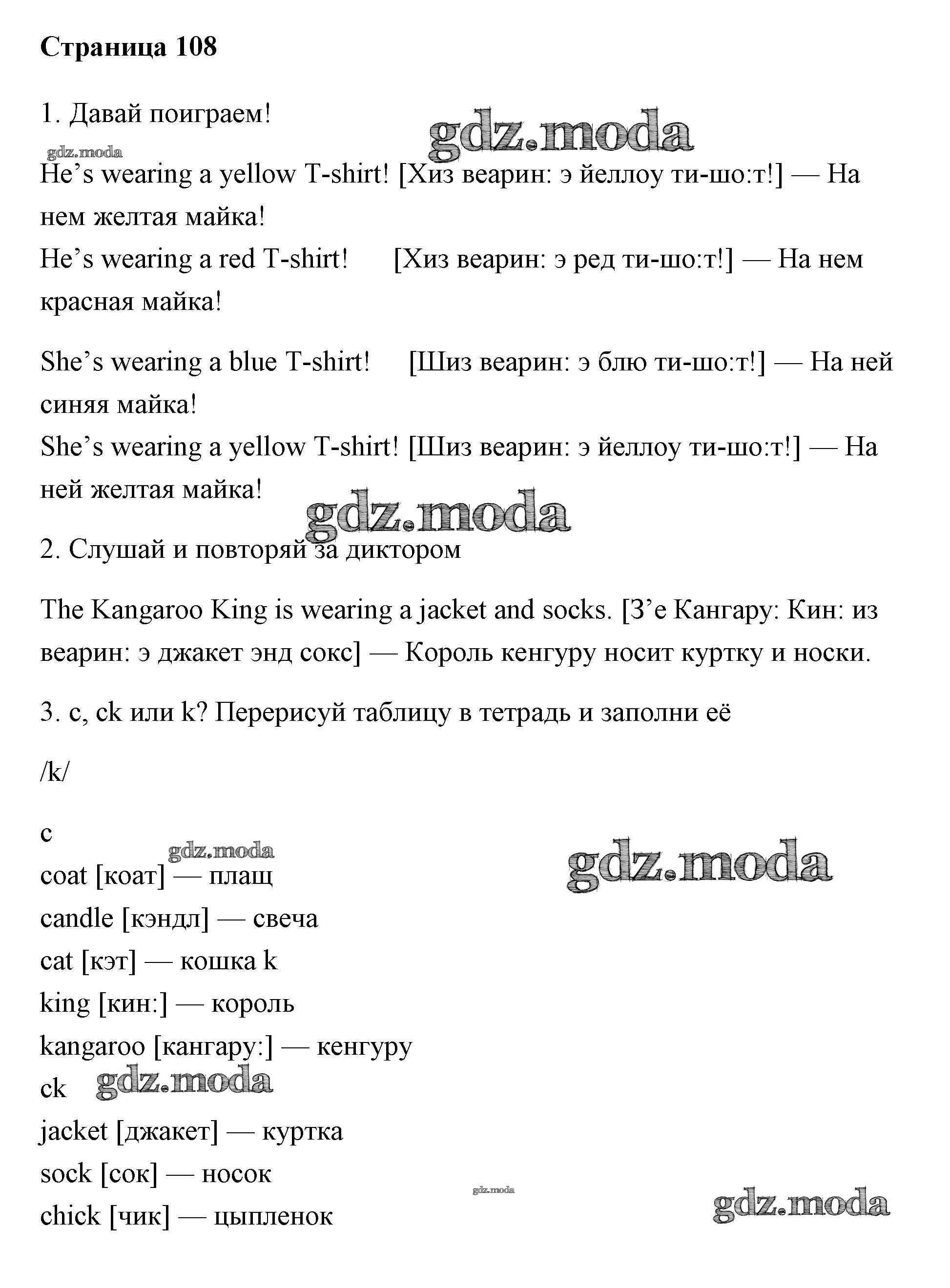 ОТВЕТ на задание № 108 Учебник по Английскому языку 2 класс Быкова Spotlight