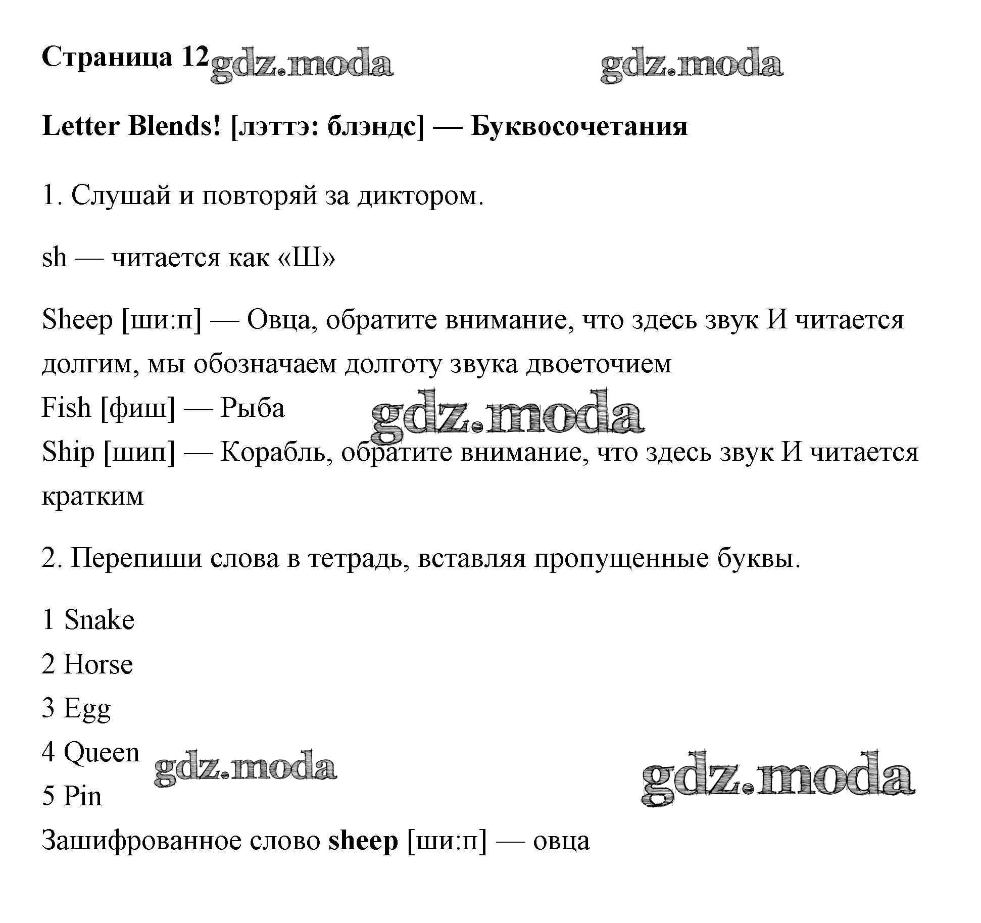 ОТВЕТ на задание № 12 Учебник по Английскому языку 2 класс Быкова Spotlight