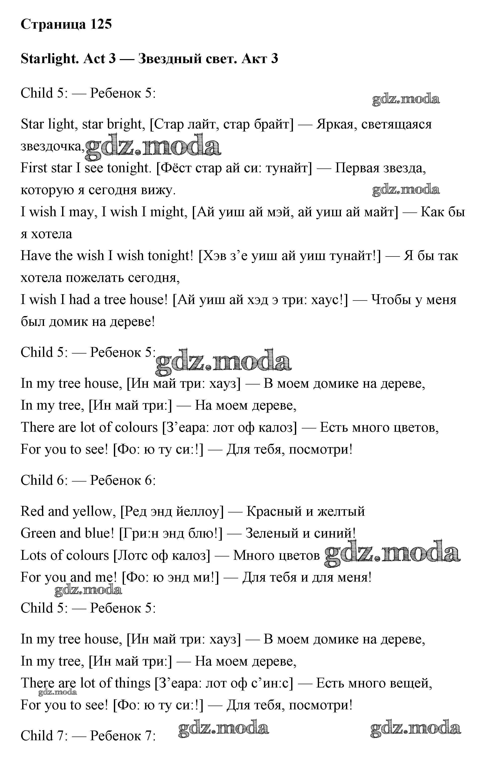 ОТВЕТ на задание № 125 Учебник по Английскому языку 2 класс Быкова Spotlight