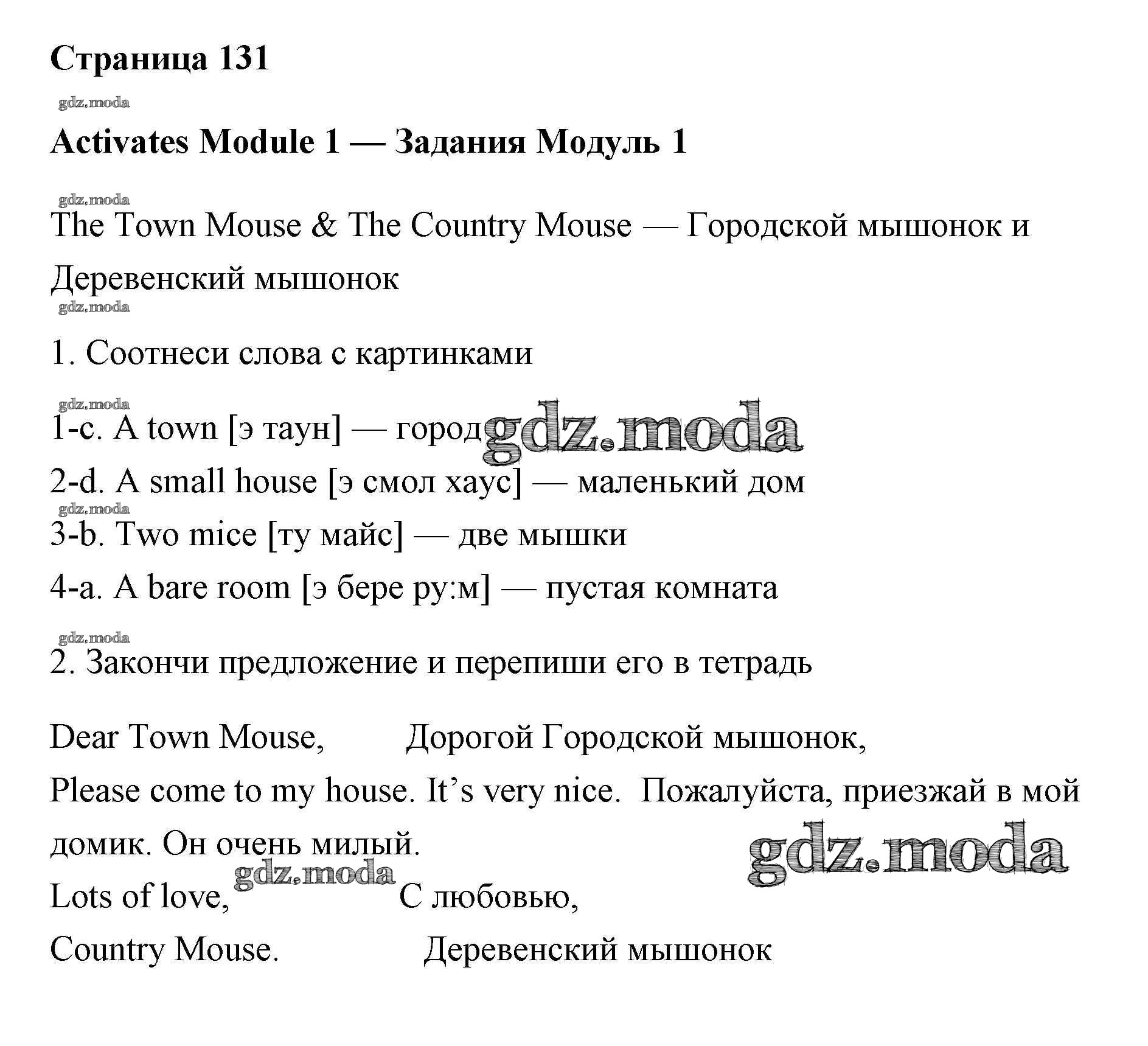 ОТВЕТ на задание № 131 Учебник по Английскому языку 2 класс Быкова Spotlight