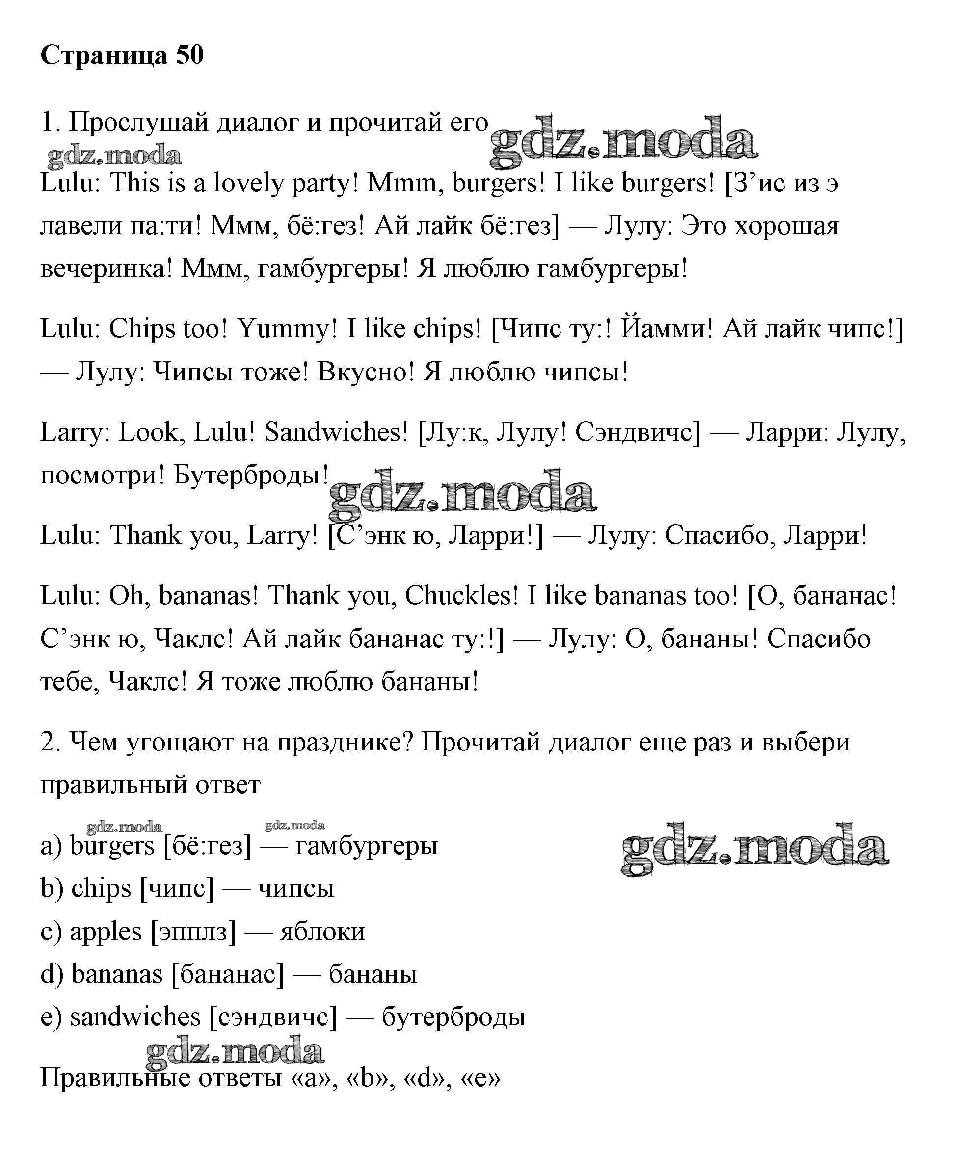 ОТВЕТ на задание № 50 Учебник по Английскому языку 2 класс Быкова Spotlight