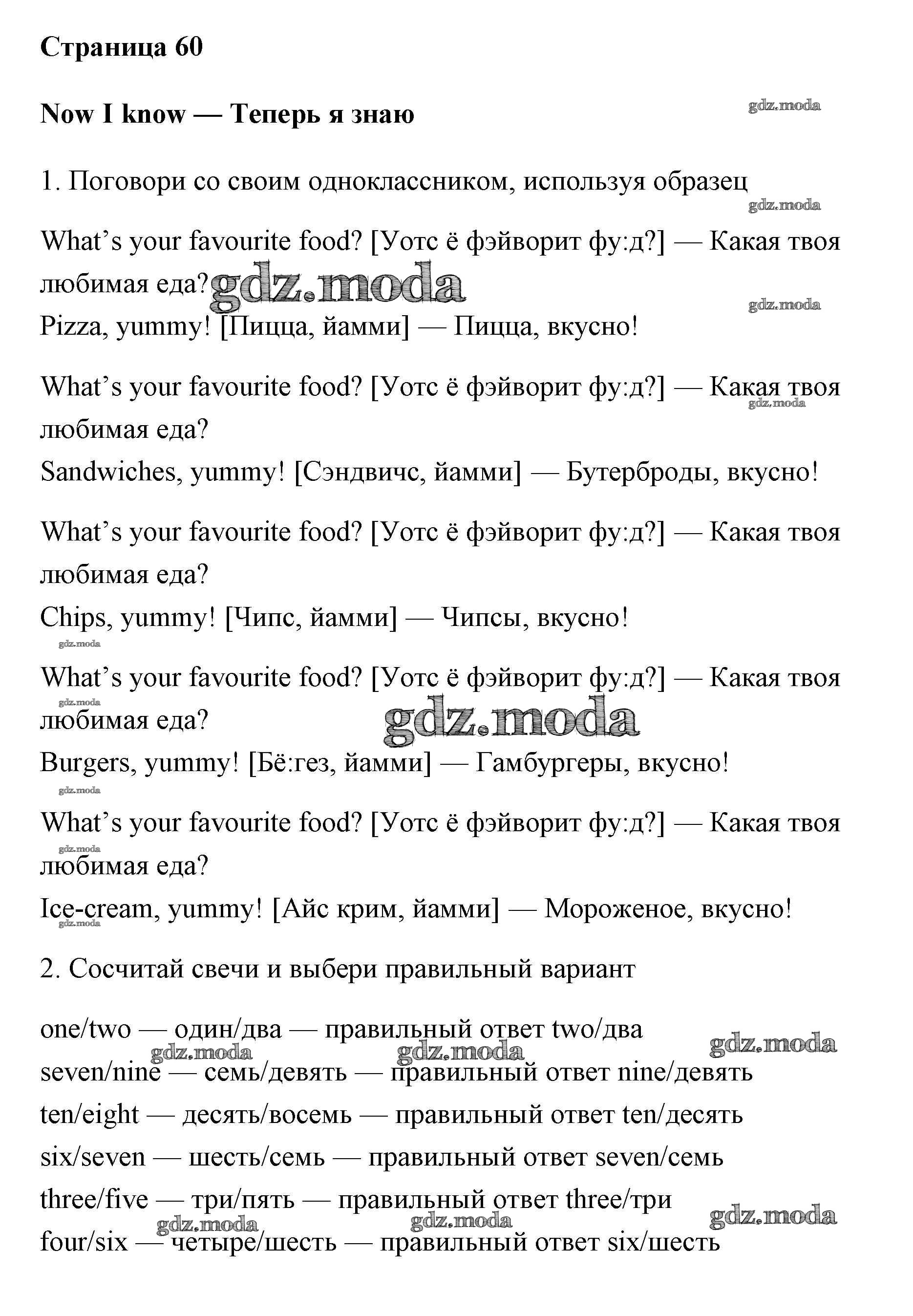 ОТВЕТ на задание № 60 Учебник по Английскому языку 2 класс Быкова Spotlight