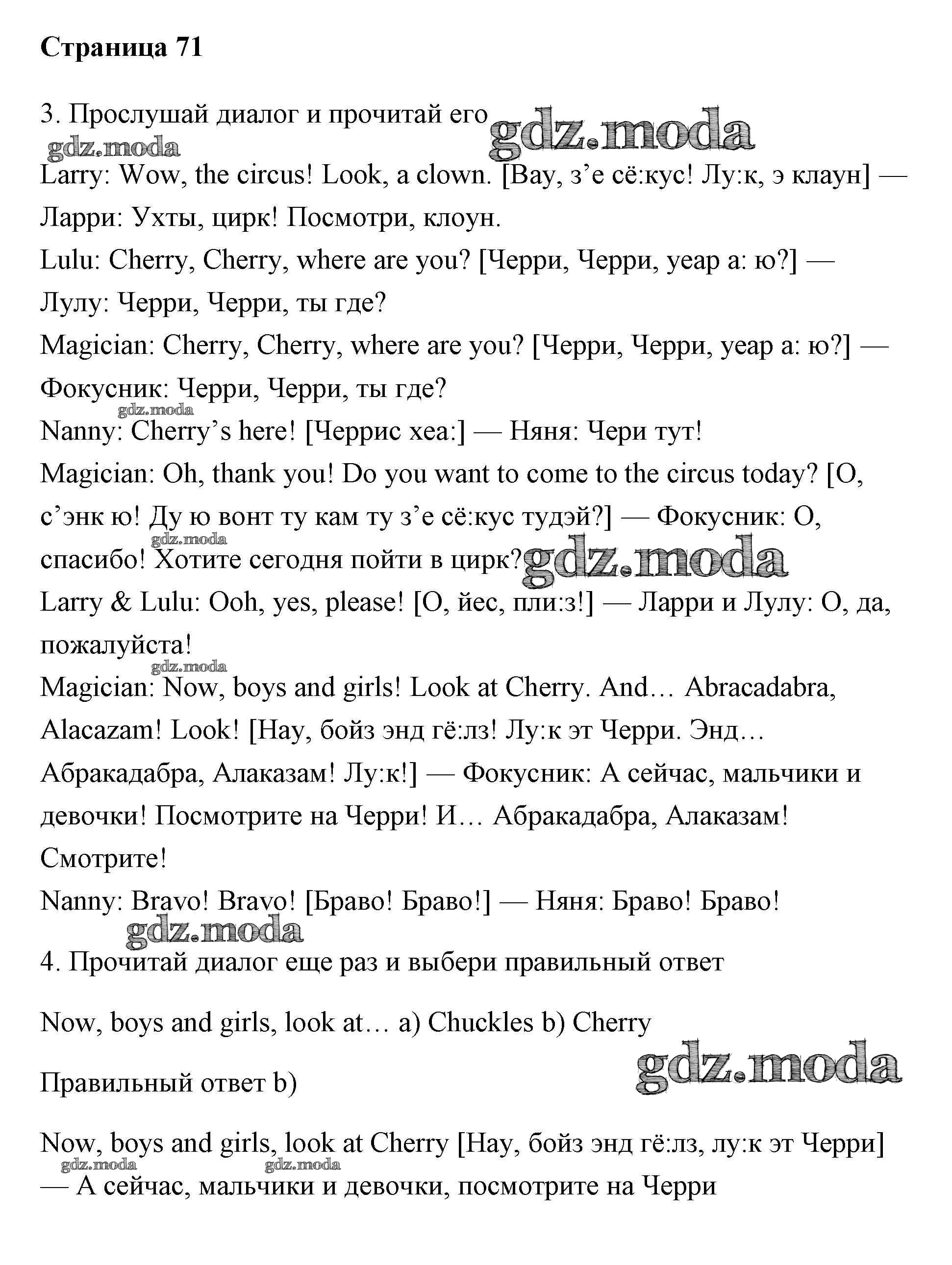ОТВЕТ на задание № 71 Учебник по Английскому языку 2 класс Быкова Spotlight
