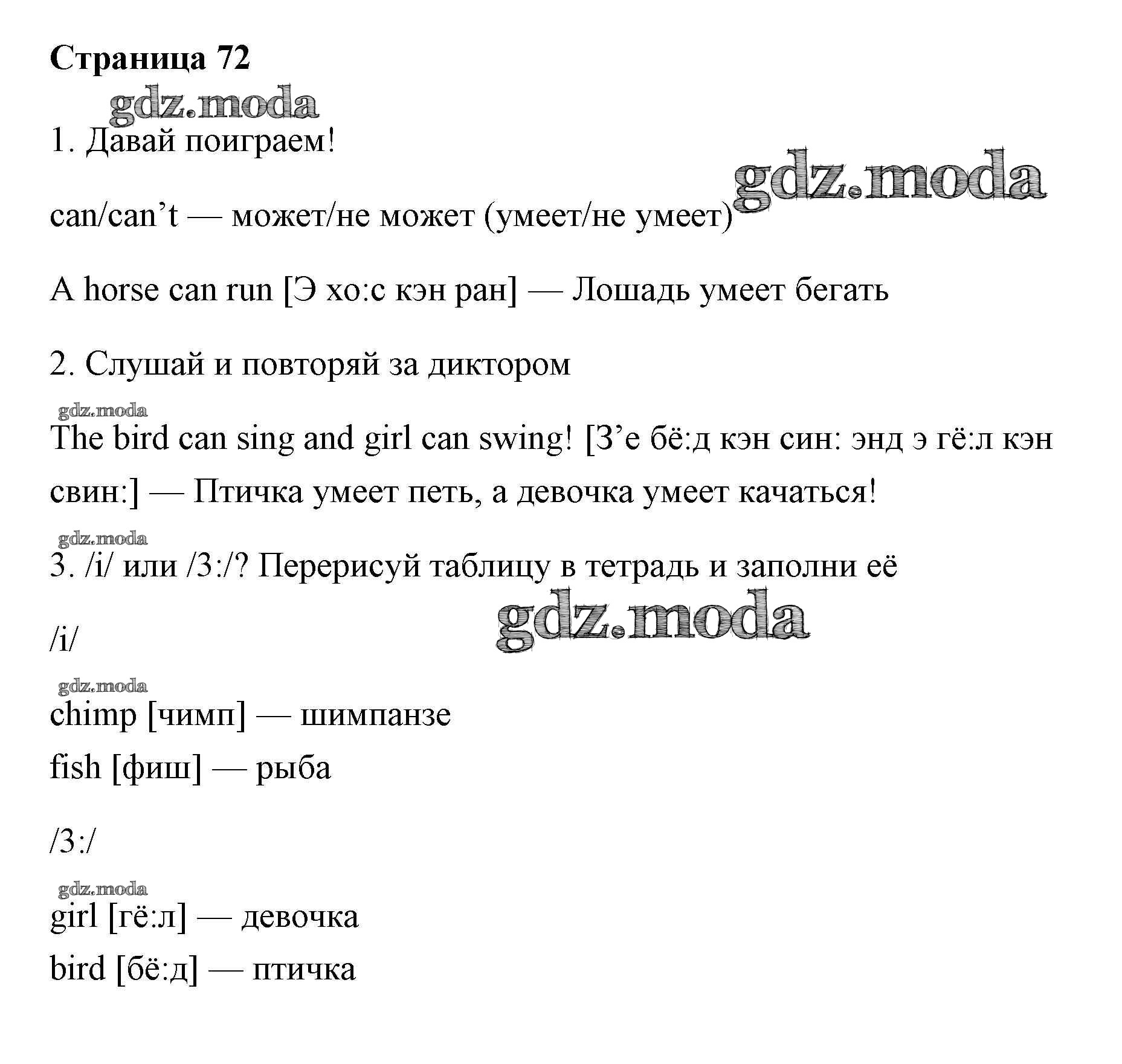 ОТВЕТ на задание № 72 Учебник по Английскому языку 2 класс Быкова Spotlight