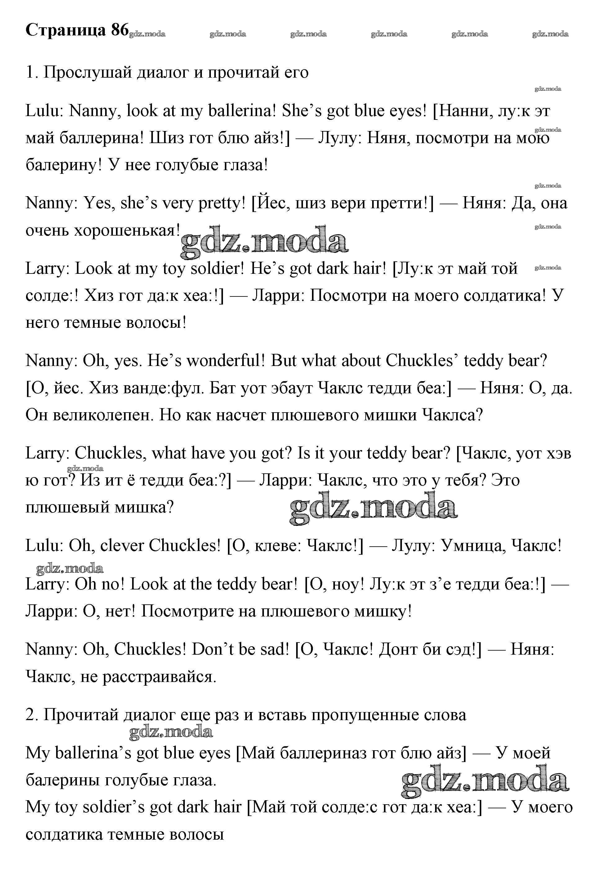 ОТВЕТ на задание № 86 Учебник по Английскому языку 2 класс Быкова Spotlight