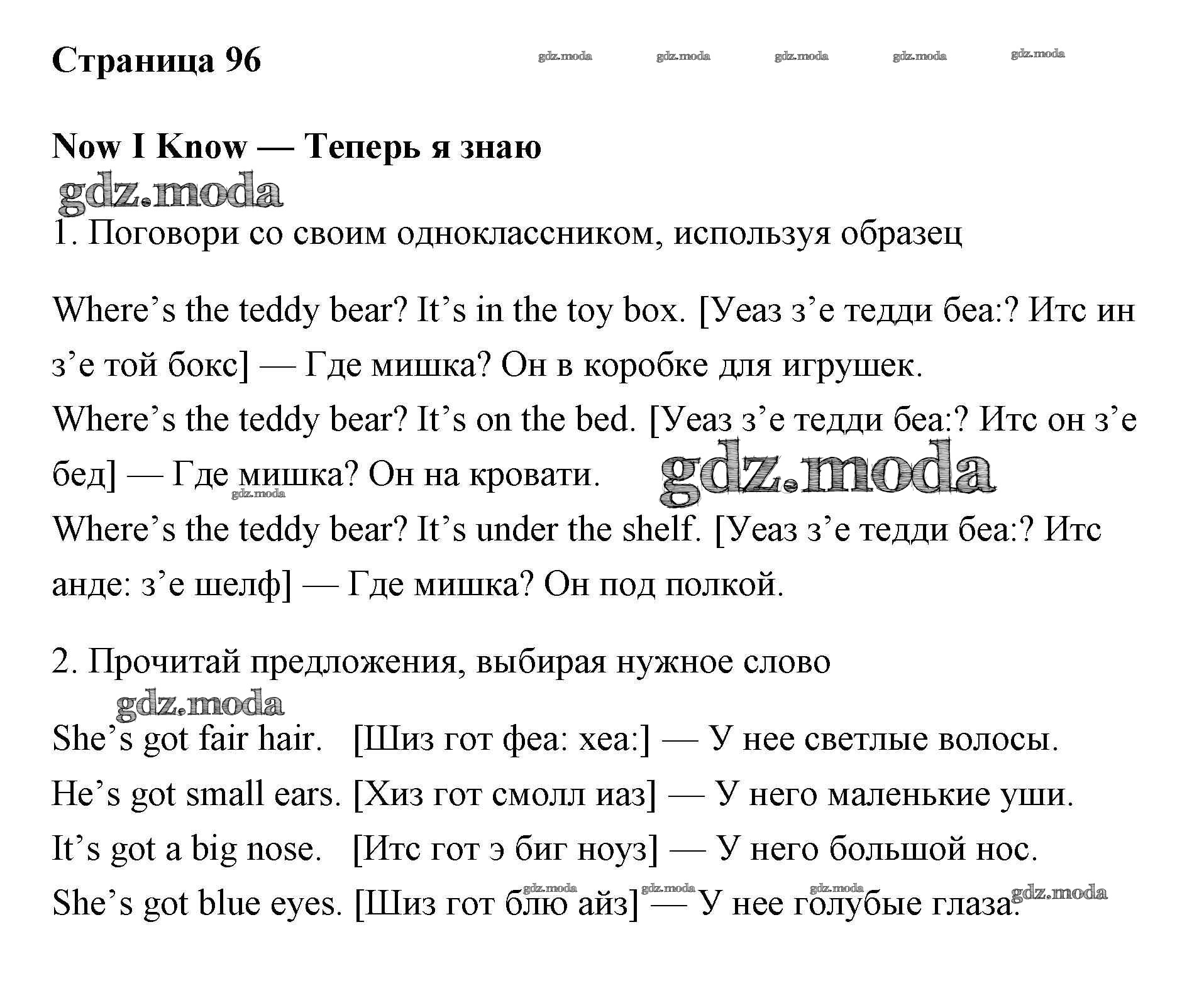ОТВЕТ на задание № 96 Учебник по Английскому языку 2 класс Быкова Spotlight