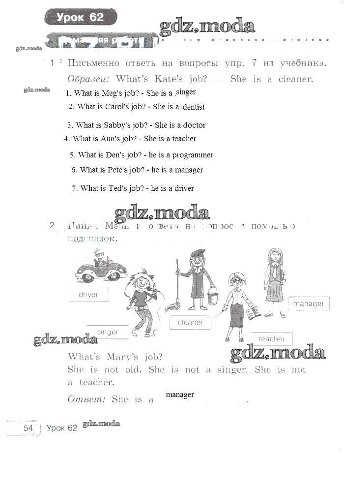 ОТВЕТ на задание № 54 Рабочая тетрадь по Английскому языку 2 класс Кауфман Happy English