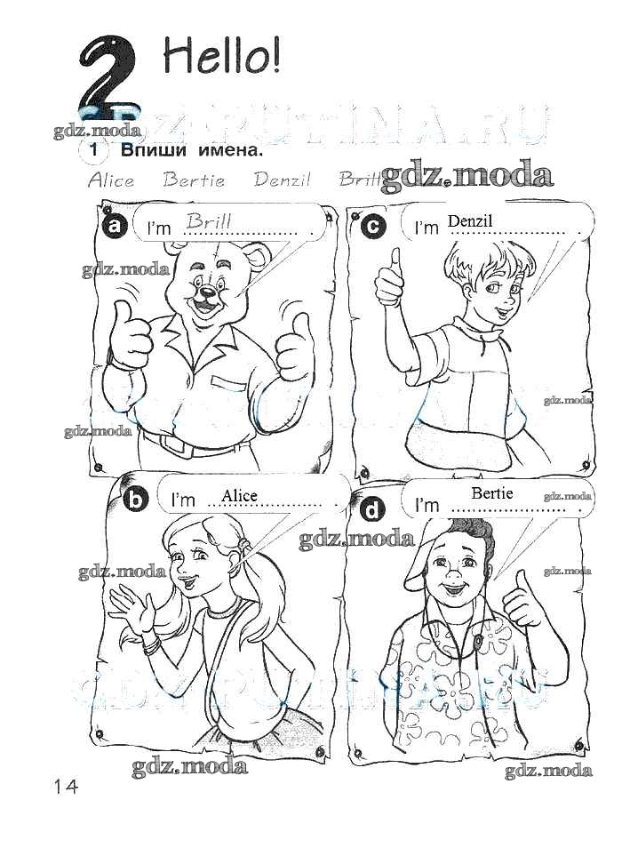 ГДЗ решение к заданию № 14 Английский язык 2 класс рабочая тетрадь Комарова Русское слово 2014 ФГОС бесплатно на гдз.мода!